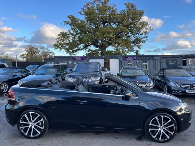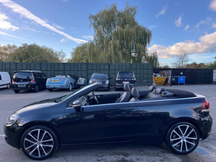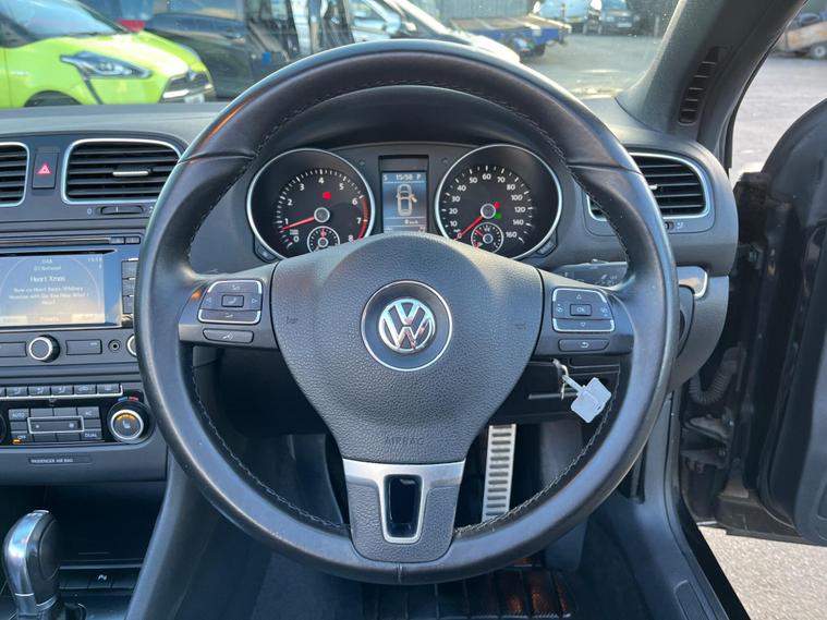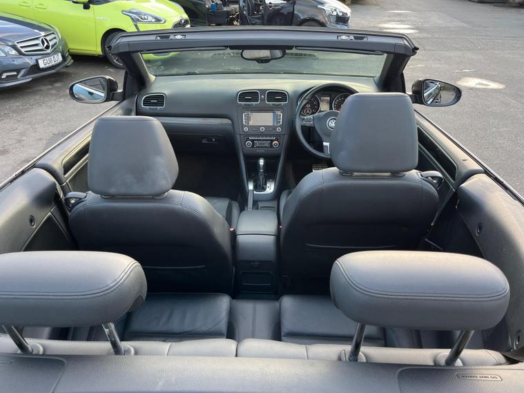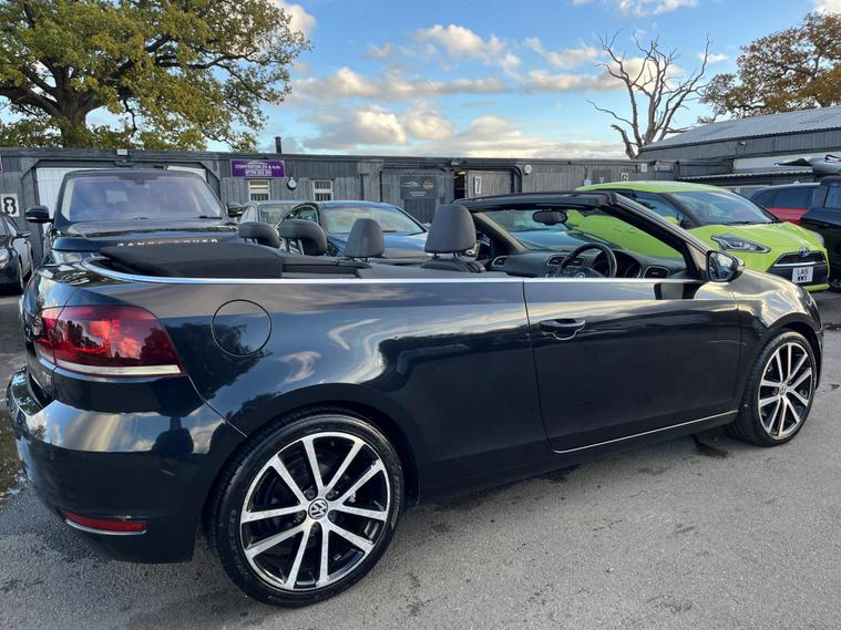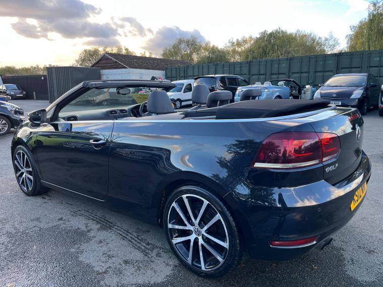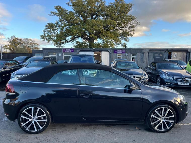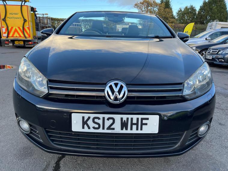JUST HAVING A RECENT ROOF WINTER SERVICE AND ALL THE DRAINS CLEANED. THIS Volkswagen Golf 1.4 TSI GT Cabriolet DSG Euro 5 2dr POWER ROOF CONVERTIBLE AUTOMATIC LOOKS AMAZING IN EBONY METALLIC & CONTRASTING EBONY SOFT VIENNA LEATHER SEATS AND DOOR CARDS HEADLINING & ALUMINIUM TRIM TO THE DASH & DOOR CARDS YES VERY SMART. THE LAST LADY OWNER HAS LOVED THE CONVERTIBLE FOR YEARS YOU CAN TELL THAT BY THE SUPERB NEW CONDITION THE CABRIOLET IS IN YES AND IT'S REALLY GOOD MILEAGE FOR THE YEAR ONLY 80K WITH A FULL SERVICE HISTORY. EXTRAS INCLUDE COLOUR FACTORY WIDE SCREEN SAT NAV WITH WITH CD-MULTI-PLAYER, BLUE TOOTH TELEPHONE CONNECTION, FRONT & REAR PARKING AID, DUAL ZONE DIGITAL CLIMATE CONTROL AIR-CONDITIONING, REMOTE CONTROL CENTRAL LOCKING, 18 INCH DIAMOND CUT ALLOY WHEELS JUST REFURBISHED IT COMES WITH 2 SETS OF REMOTE KEYS & ALL THE BOOKS & MANUALS. This 2012 Volkswagen Golf TSI GT offers a blend of style and practicality, making it an excellent choice for everyday driving. Powered by a 1.4 litre petrol engine, this GT trim model comes equipped with a range of desirable features. You'll appreciate the convenience of 2 zone electronic climate control, ensuring comfort for all occupants, and the ease of parking with both front and rear parking sensors. Stay connected on the go with Bluetooth telephone preparation, and enjoy enhanced visibility thanks to the dusk sensor which automatically activates the headlights. This Golf TSI GT also stands out with its impressive fuel economy, achieving up to 45 miles per gallon, which indicates it is more economical than many similar vehicles. Furthermore, its low CO2 emissions highlight its environmental consideration compared to other cars in its class. The generous boot space provides ample room for shopping, luggage, or sports equipment, demonstrating its versatility for various needs..