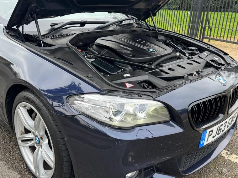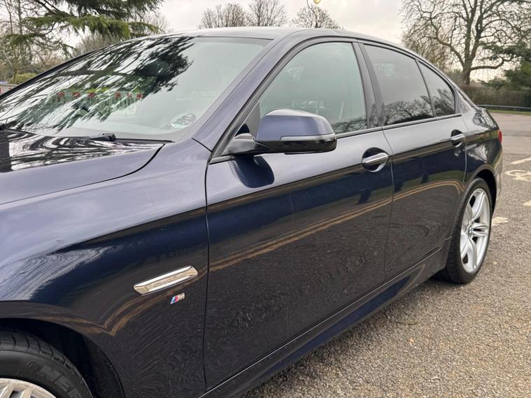 This 2013 BMW 5 Series 530d M Sport boasts a full service history, ensuring its excellent provenance. As a Euro 6 compliant model, it features a powerful 3.0L diesel engine and comes with 12 months MOT for your peace of mind. The M Sport trim enhances its appeal, while notable features include Enhanced Bluetooth Telephone Preparation with USB Audio Interface, Surround View with a 360 degree camera for effortless parking, and automatic four zone climate control for ultimate comfort. The Media Package and BMW Professional Multimedia navigation system ensure you stay connected and entertained on every journey.Experience impressive performance with the 530d M Sport, capable of accelerating from 0 to 62mph in just 5.8 seconds, a highlight that demonstrates its superior responsiveness compared to other vehicles in its class. This model also benefits from a low insurance group, making it an economical choice. Furthermore, you will appreciate the generous boot space, offering ample room for luggage or shopping, further enhancing its practicality for everyday use and longer trips..