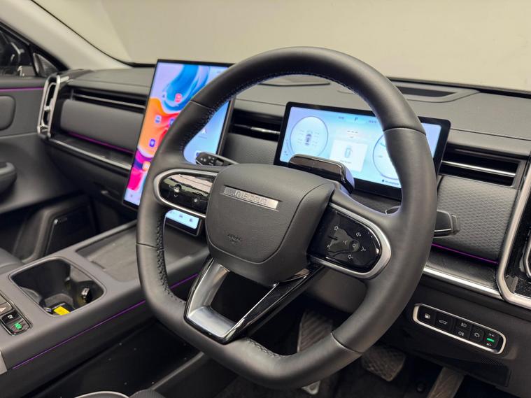This 2025 JAECOO 7 T SHS Luxury is a superb example, having had only one owner since new. It boasts a 1.5 litre petrol plug in hybrid engine, meeting Euro 6 emissions standards, and comes in the desirable Luxury trim. Inside, you'll find a wealth of comfort and convenience features, including Bluetooth hands free connectivity, a heated steering wheel, and front deluxe heated seats for those colder journeys. The full length panoramic sunroof, with an opening front section, adds a sense of spaciousness and light to the cabin.The JAECOO 7 T SHS Luxury also features adaptive cruise control, making longer drives more relaxed. This particular model offers generous boot space, perfect for accommodating luggage or shopping. These features combined demonstrate a higher level of specification and comfort compared to many other vehicles in its class, offering a refined and practical driving experience..