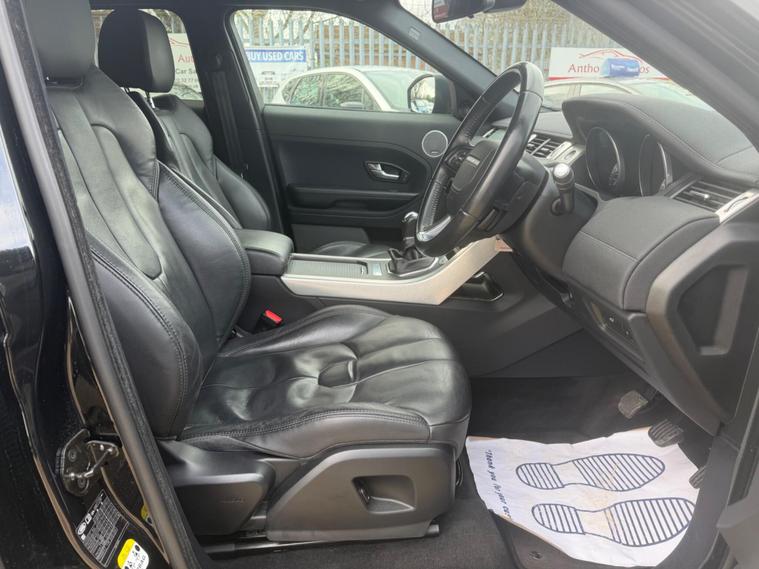 2015 Land Rover Range Rover Evoque 2.2 eD4 Pure FWD Euro 5 (s/s) 5dr. Just 53k miles. Black with heated black Leather seats. Full Service History (Mostly Land Rover) and last serviced @ 53, 579 on 06/02/2026. NEW MOT till October. 4 New Tyres. Specification includes: Heated Leather Seats, Ambient Lighting, Cruise Control, 20'' Alloy Wheels, DAB, dual zones climate controlled air conditioning, radio multi cd player with USB & AUX inputs, steering wheel audio and phone controls, folding rear seats, isofix, spare wheel + 2 keys and much more! 6 month engine and gearbox warranty included. PX WELCOME. *** Low Rate Finance Available *** All Major Cards Accepted. Free 12 months AA Roadside Breakdown and Recovery included. Additional AA warranties for 1, 2 or 3 years available. Call today to view and drive this exceptional car!.
