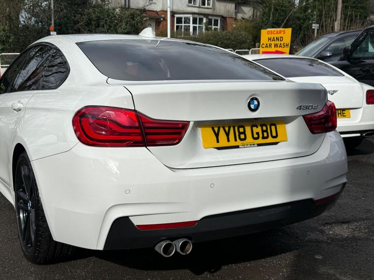 2018 BMW 4 Series Gran Coupe 3.0 430d M Sport Auto Euro 6 (s/s) 5dr finished in Alpine White Gloss with Dakota Leather in Night Blue/Oyster. This example has covered 44, 860 miles, has 2 former keepers, comes with a full V5, and starts and drives very well. Please see the photos for full condition.Service HistoryFull service history recorded on the iDrive system, last completed at 43, 437 miles on 20/10/2025 with supporting invoice, only a few thousand miles ago. A new MOT will be completed as part of our preparation process.Specification Includes:Heads Up DisplayHarman/Kardon Loudspeaker SystemM Sport Braking SystemComfort Access SystemEnhanced Bluetooth with Wireless ChargingDriving AssistantReverse Assist CameraElectrically Folding Exterior Mirrors with Anti-DazzleSun Protection GlassSpeed Limit DisplayExtended StorageHigh Beam Assistant19'' M Sport Alloy WheelsAluminium Carbon Trim Finishers with Pearl Chrome HighlightOnline EntertainmentRemote ServicesWiFi Hotspot PreparationA 3-month comprehensive warranty is included, with the option to extend for up to two years. Part exchange welcome for any value, and our Buying Department can provide prompt valuations. Nationwide delivery is available at an additional cost upon request. You can reserve this vehicle today with a £250 fully refundable deposit. We have over 150 vehicles in stock to choose from. Established in 2021, we pride ourselves on excellent customer service and have 200+ positive reviews. All our retail vehicles are fully health-checked and prepared to a high standard. As an AA Approved Dealer with Trading Standards endorsement, you can buy with confidence. Every car comes with 12 months free AA roadside breakdown and recovery, regardless of age, value or mileage. We are regulated and authorised by the Financial Conduct Authority (FCA) under FRN: 1014981..
