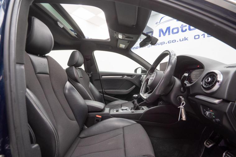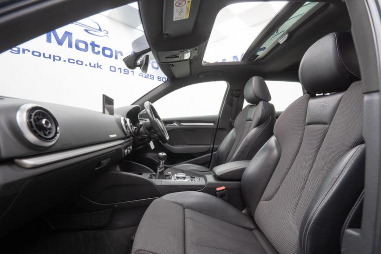 This 2017 Audi A3 TFSI S line offers a sophisticated driving experience with its 1.5 litre petrol engine and Euro 6 emissions class. This particular model benefits from a host of desirable features, including a striking Matrix LED Exterior Lighting Pack with advanced LED headlights, a panoramic glass sunroof that opens for an airy cabin feel, and privacy glass for added discretion. For enhanced comfort and safety, it includes rear side airbags and door mirrors that are heated, electrically adjustable, folding, and auto dimming.The Audi A3 TFSI S line excels with its impressive performance, achieving 0-62mph in just 8.2 seconds, demonstrating its responsive acceleration. This model also boasts a large boot space, offering practical versatility for everyday needs and longer journeys. These highlights collectively position this Audi A3 as a compelling choice, offering a superior blend of technology, comfort, and performance compared to other vehicles in its class.Please call our experienced sales team on 01914800597 for any additional specification queries, an in depth appraisal/ Video call or maybe we can help fund your new car. All our vehicles are prepared to the highest standards by our expert technicians in our fully equipped preparation centre as we're an AA approved dealer. Every car must go through a strict and thorough inspection, Items that require attention, mechanically or cosmetically are addressed prior to delivery. We offer a wide range of Finance and Warranty packages as well as fantastic trade rates for allow wheel refurbs/colour changes, window tinting and much more. All our vehicles are subject to a £199 service support fee and are therefore supplied with pre delivery service, 12 months MOT, 12 months AA breakdown cover and 6 months Auto Protect warranty that can be extended up to 24 month. All vehicles are HPI clear a full report can be supplied at point of sale. Home Delivery can be arranged throughout the UK. We welcome part exchanges and can tailor finance packages to suit you. See our latest stock on dealer's website