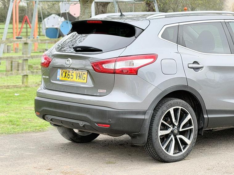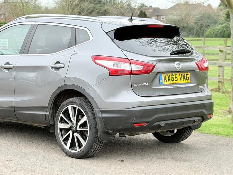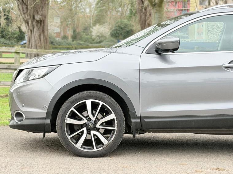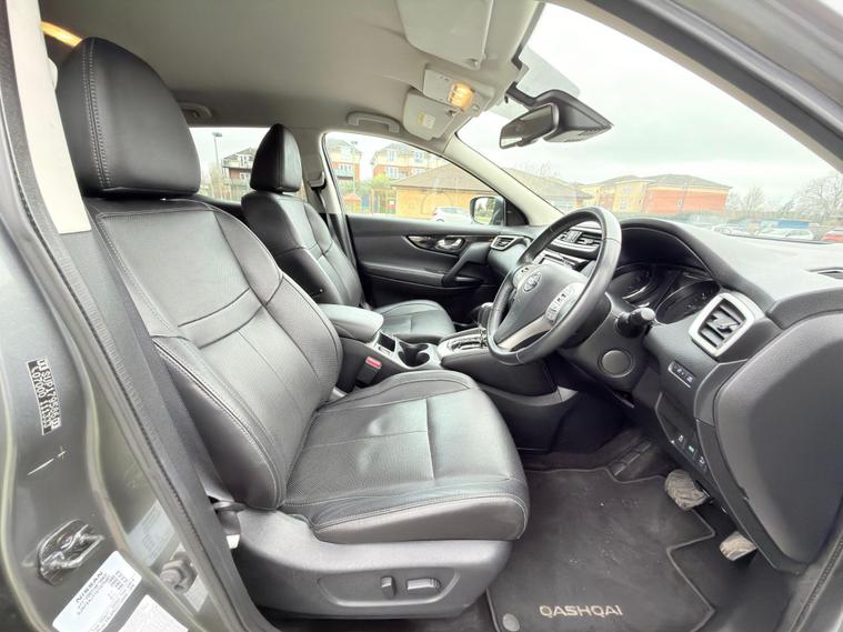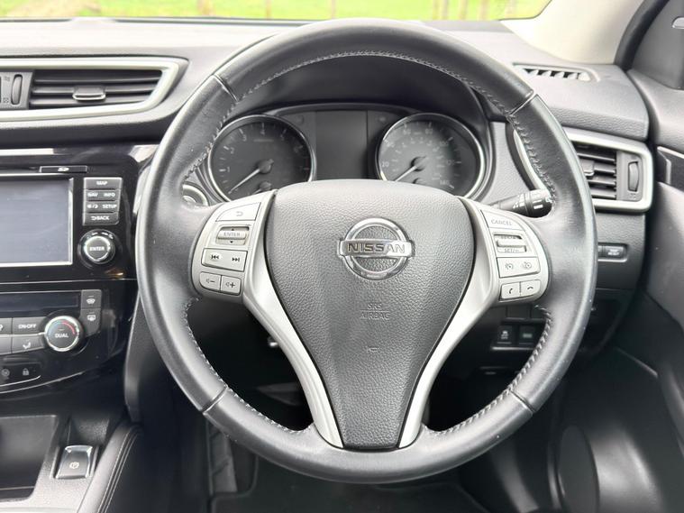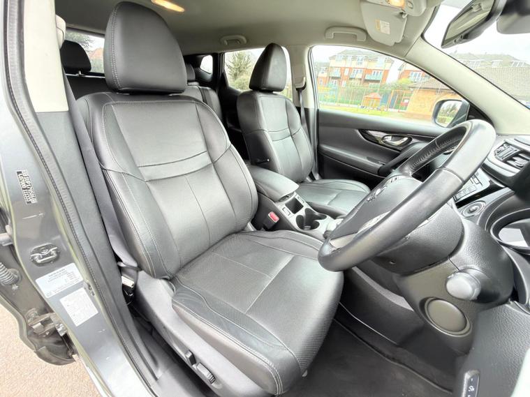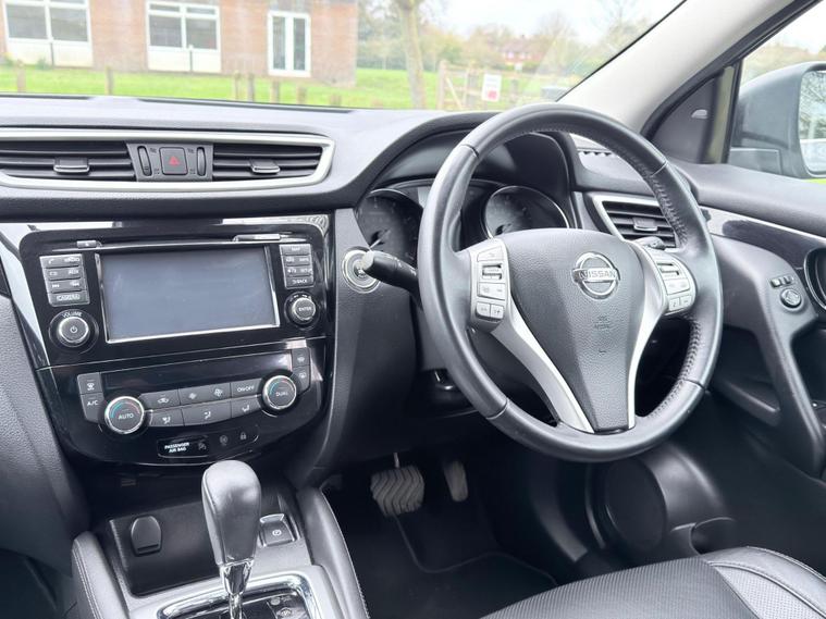 Full Nissan Service History, 10 Nissan Main Dealer Services, All MOT’s Carried Out By Nissan Main Dealer, 1 Owner From New, Satellite Navigation, Full Black Leather Interior, Xenon Headlights, Lane Change Warning Indicator, Speed Limit Display, Blind Spot Indicator, Electric Seats, Heated Seats, Bluetooth Telephone And Audio, 360 Degrees Parking Camera, Anti Collision Mitigation, Very Well Maintained And A Very High Specification Vehicle, ULEZ Compliant. This 2015 Nissan Qashqai DIG-T Tekna boasts a single owner and an exceptionally low mileage of just 64, 000 miles, making it a standout choice. Powered by an efficient 1.2 litre petrol engine, this Euro 6 compliant model offers impressive fuel economy of 49 miles per gallon and benefits from low CO2 emissions. The Tekna trim level comes equipped with a desirable panoramic glass roof, front and rear parking sensors for enhanced manoeuvrability, and an advanced Around View Monitor providing a 360 degree bird's eye view. Further enhancing its appeal are the bright and efficient Bi-LED headlights, all contributing to a refined driving experience.This Qashqai also stands out with its low insurance group, suggesting it could be more affordable to run. The combination of its low mileage for its age, single owner history, and clear vehicle history check indicates a well cared for vehicle. These factors, alongside its excellent fuel economy and low emissions, demonstrate how this particular Nissan Qashqai DIG-T Tekna offers a compelling package compared to other similar vehicles on the market..