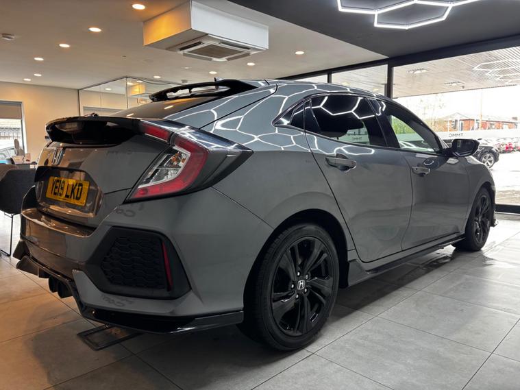 This 2019 Honda Civic VTEC Turbo Sport is a Euro 6 compliant petrol model offering a compelling blend of performance and technology. Featuring the intuitive Honda CONNECT system with GARMIN Navigation and Android Auto, this Civic ensures you stay connected and on course. Parking is made simpler with the rear parking camera and assistance, while the dusk sensing headlights automatically illuminate your path. Inside, you'll find dual zone climate control for personalised comfort and intelligent adaptive cruise control for relaxed journeys.The 1.5L VTEC Turbo engine provides an impressive 0-62mph acceleration in just 8.2 seconds, demonstrating its dynamic capability. This performance, combined with its generous boot space, sets this Civic apart from many other vehicles in its class. The Sport trim level further enhances its appeal, offering a refined driving experience for everyday use and longer trips..