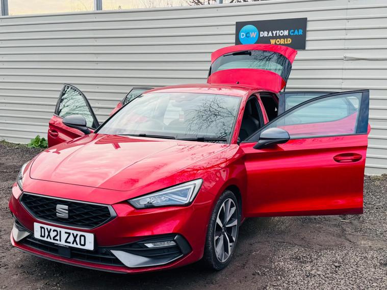 **HOME DELIVERY AVAILABLE**Drayton Car World are delighted to offer this stunning SEAT Leon the car is presented in excellent condition both inside and out. This 2021 SEAT Leon TSI EVO FR Sport is a superb example of a well maintained vehicle. It boasts a 1.5 litre Euro 6 compliant petrol engine, offering a blend of efficiency and performance. The FR Sport trim level ensures a dynamic driving experience, complemented by a heated leather flat bottomed perforated steering wheel for added comfort. Navigation is seamlessly integrated into the Media System Plus, which also includes Bluetooth connectivity for your devices. Illuminating your journey are LED headlights featuring dynamic turn signals, enhancing both visibility and style.Experience effortless parking with the Park Assist system, which includes front and rear parking sensors. Inside, the driver's seat is powered with memory function, allowing you to easily recall your preferred position, while the passenger seat offers manual height adjustment. This Leon also offers generous boot space, making it practical for everyday use and longer trips. Demonstrating its spirited nature, this model achieves 0 to 62 miles per hour in just 8.7 seconds, a performance that sets it apart from many other vehicles in its class.It benefits from a full-service history and new MOT. HPI clear. ulez compliant , we offer a 3-month warranty and 12 months of AA Breakdown Cover, home delivery is available so you can buy from the comfort of your own home. we are open from 10am to 7pm , 7 DAYS A WEEK, ALL PART EXCHANGE ARE WELCOME ***ADDRESS *** Willowdene, The Common West Drayton UB7 7HQ***.