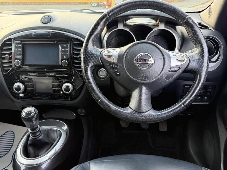 This 2016 Nissan Juke DIG-T Tekna offers excellent value with its partial service history and clear vehicle history check, indicating a well maintained vehicle. This stylish Tekna trim model is equipped with a 1.2 litre petrol engine, meeting Euro 6 emissions standards. Inside, you'll find comfortable heated front seats, an intelligent key with push button start for effortless entry and ignition, and automatic climate control with a pollen filter to keep the cabin pleasant. For added convenience and safety, it features a colour reversing camera and a comprehensive safety pack including blind spot assistance and a 360 degree camera system.With only two previous owners, this Juke stands out for its economical running costs, boasting an impressive fuel economy of 50 miles per gallon and low CO2 emissions, making it a more environmentally friendly choice. Its low insurance group rating further contributes to its affordability, suggesting that running this vehicle is less expensive compared to many others in its class..