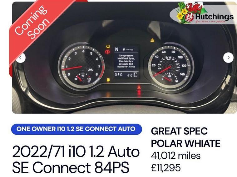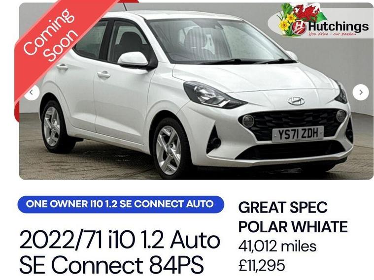 Hello and thank you for taking the time to view our vehicle listing.This is a Hyundai i10 1.2 SE Connect Automatic, finished in crisp Polar White and having covered 41, 012 miles from new. This is a one owner vehicle, presented in great condition throughout and carefully maintained.Powered by the reliable 1.2 petrol engine producing 84PS and paired with the smooth automatic gearbox, this i10 offers an easy and comfortable driving experience. It is perfect for town and city driving thanks to its compact size, excellent visibility and low running costs, while still being capable and comfortable on longer journeys. The vehicle is also fully ULEZ compliant, making it ideal for driving in low emission zones.As an SE Connect model, this i10 comes well equipped with a touchscreen infotainment system featuring rear parking sensors, air conditioning, cruise control with speed limiter, Bluetooth connectivity, electric windows, alloy wheels. Despite its compact size, the i10 offers impressive interior space and practicality, making it a fantastic choice for first-time drivers, commuters or anyone looking for a reliable and economical automatic car.Hyundai’s reputation for reliability and build quality makes the i10 one of the most popular small cars on the market, and this vehicle has been fully inspected by our Hyundai trained technicians and prepared to the highest standard, ready for its next owner.Contact us today to request your personalised video walkaround or to reserve this excellent example. ?.