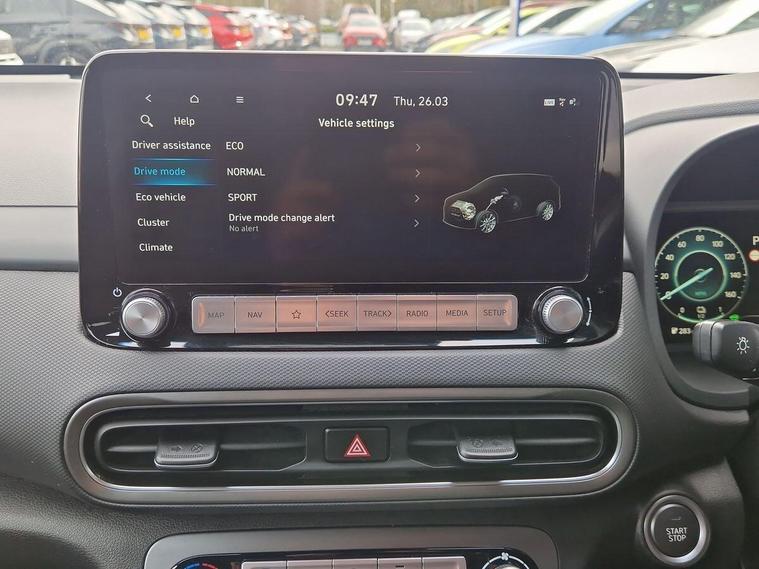 Hello and thank you for taking the time to view our vehicle listing.This is a Hyundai Kona 64kWh Premium Electric, finished in vibrant Ignite Flame and having covered 64, 051 miles from new. This is a one owner vehicle, presented in excellent condition and clearly well maintained.Powered by Hyundai’s proven 64kWh electric powertrain producing an impressive 204PS, this Kona delivers smooth, instant acceleration and a refined, quiet driving experience. The larger battery provides an excellent WLTP range of up to approximately 300 miles, making it ideal for both daily commuting and longer journeys. Charging is quick and convenient, with the ability to charge from 10–80% in around 47 minutes using a rapid DC charger, while home or workplace charging is simple using a wallbox.As a Premium specification model, this Kona comes very well equipped with a large touchscreen infotainment system with satellite navigation, Apple CarPlay and Android Auto, heated front seats, heated steering wheel, climate control, rear parking sensors with reversing camera, keyless entry with push button start, and a digital driver display. It also features Hyundai SmartSense safety technology including lane keep assist, forward collision avoidance assist and adaptive cruise control, helping to make every journey comfortable and safe.The Kona Electric remains one of the most popular electric SUVs thanks to its impressive real-world range, compact SUV practicality and low running costs compared with traditional petrol or diesel vehicles. With no engine noise, minimal servicing requirements and the benefit of home charging, it offers an excellent step into electric motoring.Fully inspected by our Hyundai trained technicians and prepared to the highest standard, this vehicle is ready for its next owner. Contact us today to request your personalised video walkaround or to reserve this fantastic electric SUV. ?⚡.