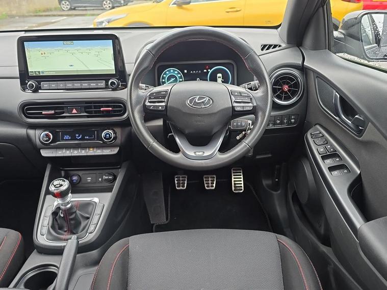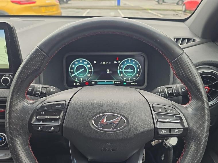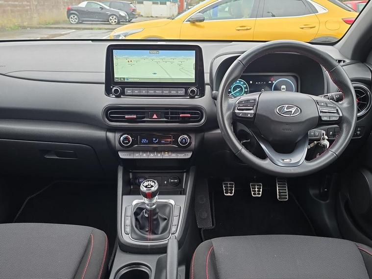 This 2022 Hyundai KONA T GDi N Line presents a superb ownership opportunity, having been cherished by just one owner since new. This stylish SUV is powered by an efficient 1.0 litre petrol hybrid engine, meeting Euro 6 emissions standards. Inside, you'll find seamless connectivity with both Apple CarPlay and Android Auto, allowing you to easily access your favourite apps and navigation. For added convenience and safety, this KONA is equipped with rear parking sensors and a rear camera with guidance system, making manoeuvring in tight spaces a breeze. Bluetooth connectivity is also included for hands free calls and audio streaming.The N Line trim level enhances the sporty appeal of this already dynamic KONA. Its low insurance group rating is a significant advantage, indicating that running costs for this vehicle are likely to be more affordable compared to similar models. This combination of a single owner, desirable N Line specification, and practical technology makes this Hyundai KONA a stand out choice for those seeking a well maintained and feature packed compact SUV..
