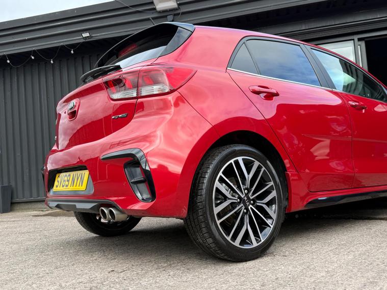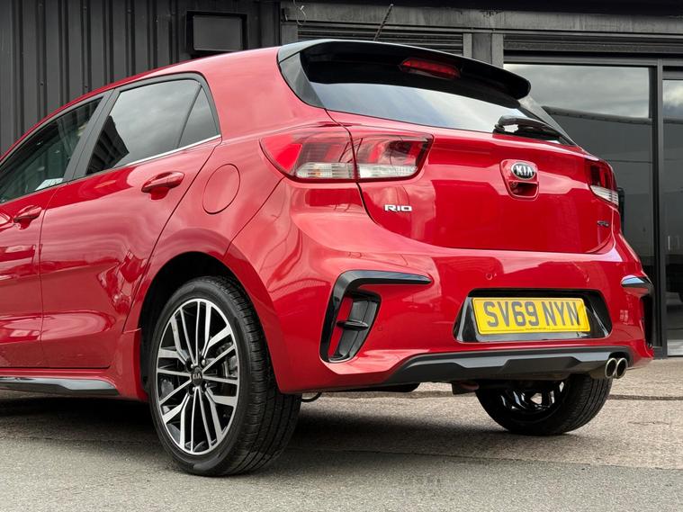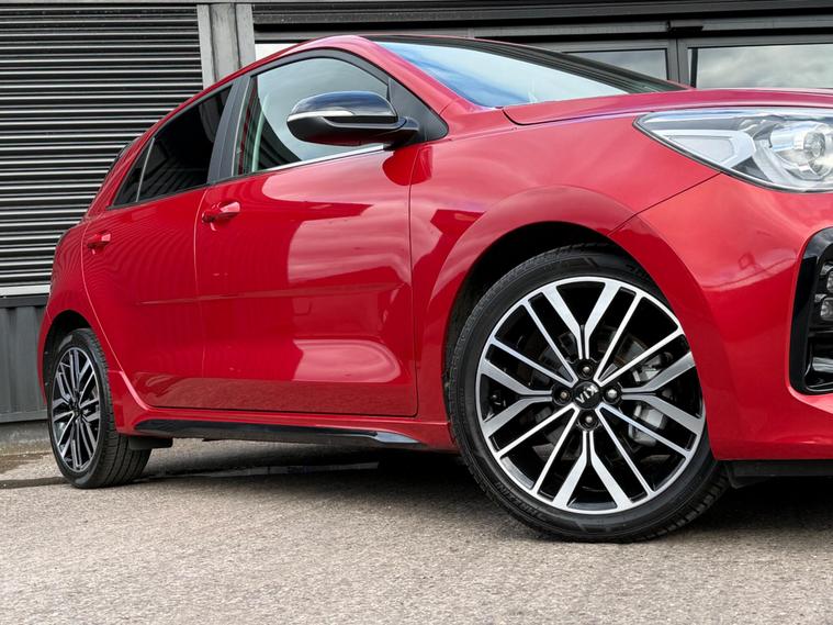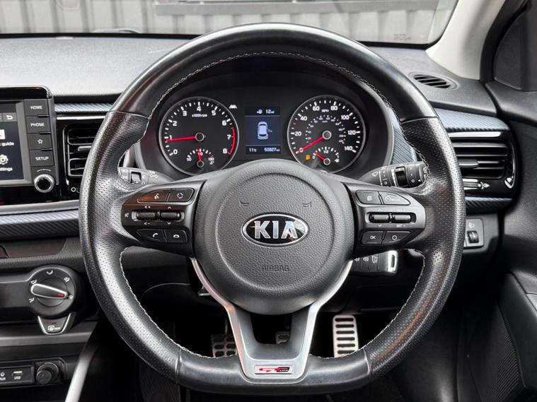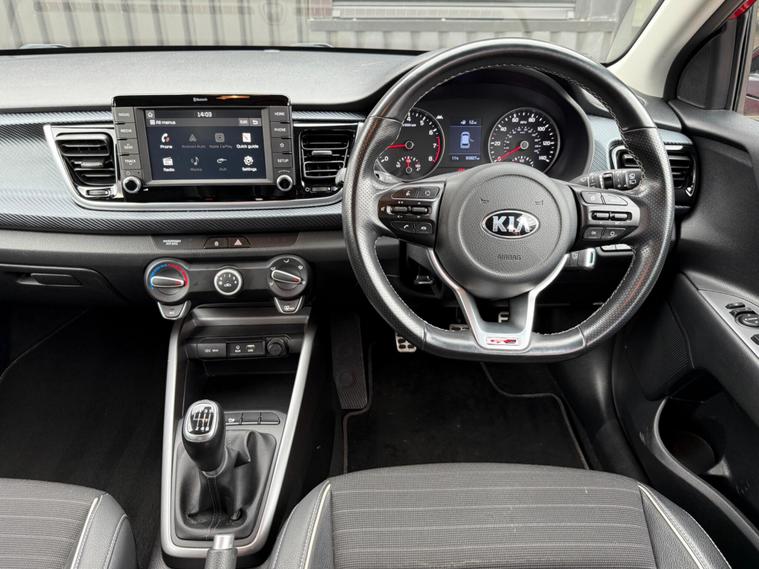 Benefit from peace of mind with a full service history and an MOT valid until February 2027 on this 2019 Kia Rio T GDi GT-Line. This stylish hatchback is powered by an efficient 1.0 litre petrol engine, meeting Euro 6 emissions standards. It comes equipped with desirable features such as air conditioning, Apple CarPlay and Android Auto with voice control, and a reversing camera system with dynamic guidelines for easier parking. Enjoy seamless connectivity with Bluetooth and music streaming capabilities.This Kia Rio GT-Line offers a compelling package, indicated by its low insurance group, making it an economical choice. You'll also appreciate the generous boot space, perfect for shopping trips or weekend getaways. Its brisk acceleration, reaching 0-60mph in just 9.8 seconds, demonstrates its lively performance, setting it apart from other vehicles in its class. A clear vehicle history check and a 6 month warranty further enhance its appeal..