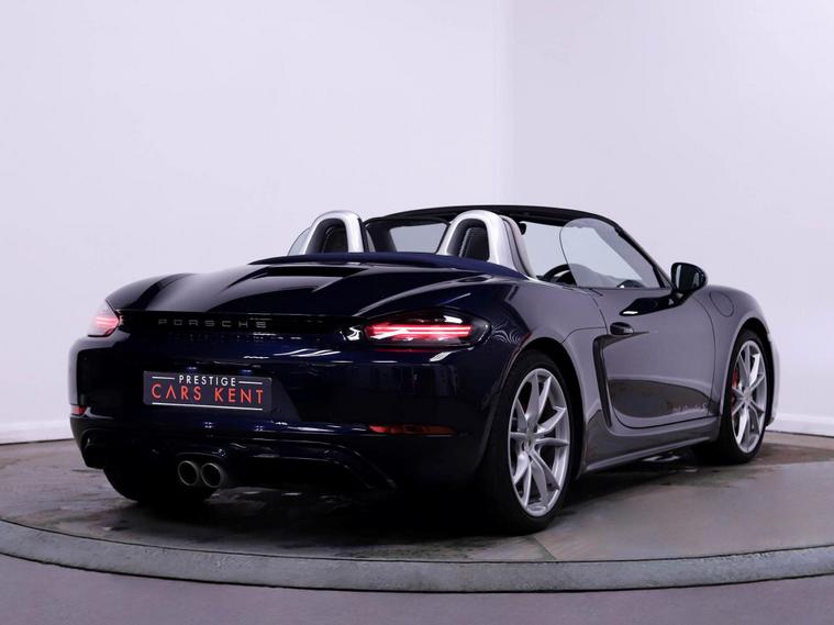 ??️ Porsche 718 Boxster 2.5T S PDK GPF Convertible ?Open-top driving excitement meets precision engineering with this stunning 718 Boxster S. Powered by a turbocharged 2.5-litre engine paired with lightning-fast PDK transmission, it delivers thrilling acceleration and razor-sharp handling. The mid-engine layout ensures perfect balance, creating an engaging and confidence-inspiring driving experience. With its sleek convertible design, premium interior and unmistakable sports car character, every journey feels special. This example was last serviced by Porsche on 17/11/2025 at 21, 691 miles, reflecting excellent maintenance. A beautifully engineered roadster from Porsche that blends performance, style and pure driving enjoyment effortlessly.✨ Some of the features we love? Front and Rear ParkAssist with Reversing Camera – Parking sensors and camera provide clear guidance, making manoeuvring easier and safer in tighter spaces.? SportDesign Package – Enhances the exterior with distinctive styling elements, giving the Boxster a sharper, more aggressive and performance-focused appearance.? Bi-Xenon Headlights with PDLS – Adaptive lighting system adjusts beam direction and intensity, improving night-time visibility and driving safety.? Bose Surround System – Premium Bose audio system delivers rich, immersive sound quality, enhancing the driving experience with exceptional clarity.?️ GT Sports Steering Wheel and PDK Gear Selector in Alcantara – Alcantara-trimmed controls provide a tactile, motorsport-inspired feel and enhanced driver engagement.? Why Buy from Prestige Cars Kent?✅ 90-Day Guarantee✅ 175-Point Quality Inspection? Nationwide Delivery Available? Call Now: 01689242905? Prefer email? Submit your enquiry today and we’ll be in touch.⭐Admin fee applies. Please confirm all specifications, as they are autogenerated⭐.