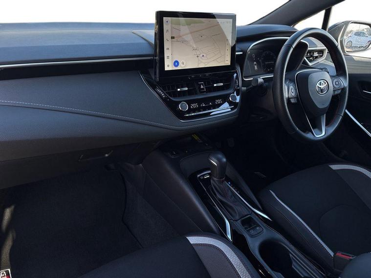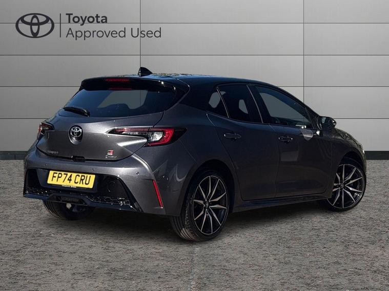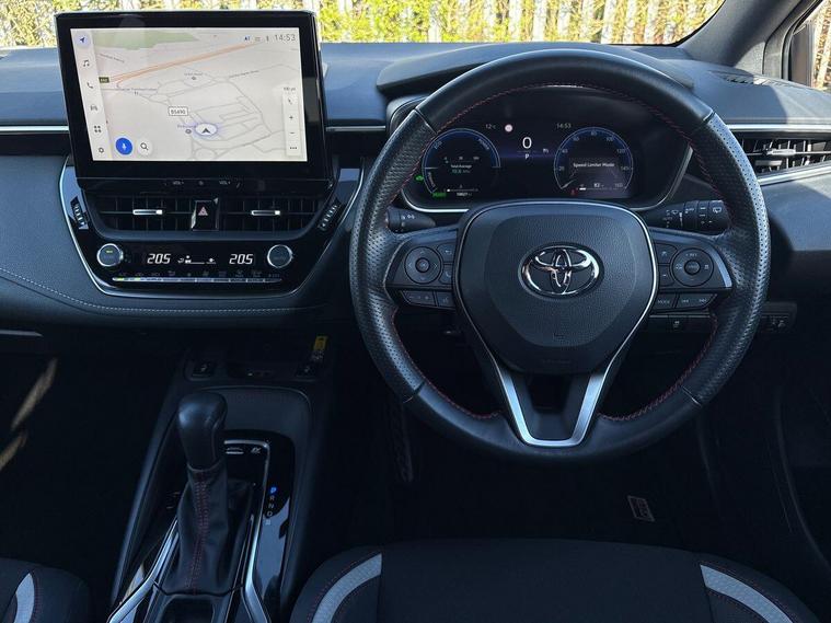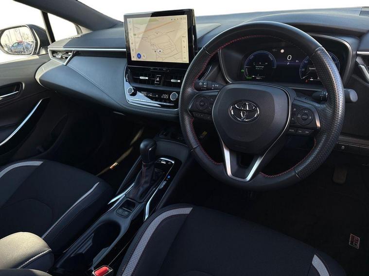 This 2024 Toyota Corolla VVT-h GR SPORT is a Toyota manufacturer approved vehicle with a full service history, having only had one owner. It features a 1.8L petrol hybrid engine and meets Euro 6 emission standards. The MOT is valid until November 2027, and there are 20 months of warranty remaining. This GR SPORT trim model comes equipped with Bluetooth connectivity, a wireless charger, a smart entry system for keyless entry, and smartphone integration with Apple CarPlay and Android Auto. For added convenience on journeys, it also includes adaptive cruise control with a speed limiter.The Corolla GR SPORT offers a compelling driving experience, accelerating from 0 to 62mph in just 9.1 seconds. Its low insurance group rating means lower running costs, and the generous boot space provides ample room for luggage or shopping. These aspects, combined with its advanced features and excellent provenance, make this Toyota Corolla a standout choice compared to other vehicles in its class..