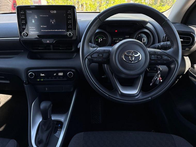 This 2023 Toyota Yaris VVT-h Design is a truly exceptional example, boasting a single owner and an incredibly low mileage of just 8982 miles. As a Toyota manufacturer approved vehicle, it comes with the peace of mind of a 12 month warranty and a full dealership service history, with its last service completed on 2025-09-05 at 7499 miles. The MOT is valid until September 2026, ensuring its roadworthiness for years to come. This Euro 6 compliant 1.5L petrol hybrid model is presented in the Design trim, offering a blend of efficiency and modern features.Experience convenience with Bluetooth connectivity, a reversing camera for easier parking, and automatic air conditioning to maintain a comfortable cabin temperature. Automatic headlights adjust to lighting conditions, while smartphone integration, including Apple CarPlay and Android Auto, keeps you connected on the go. The Yaris stands out with its remarkable fuel economy, achieving an impressive 69 mpg, and its low CO2 emissions, making it a more environmentally conscious choice compared to many other vehicles in its class..