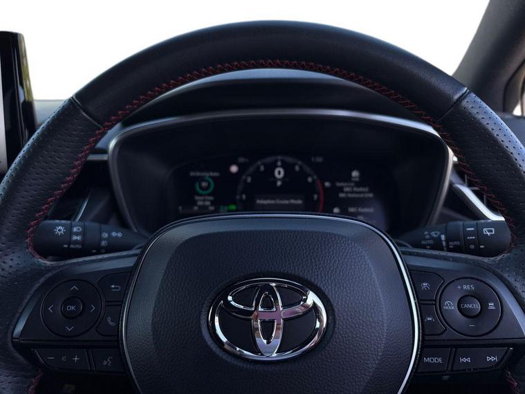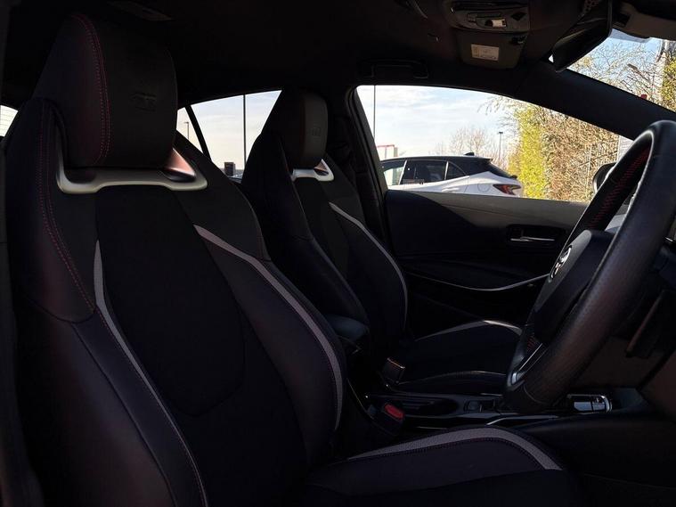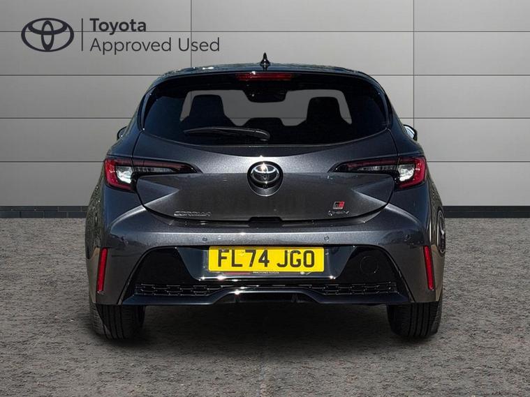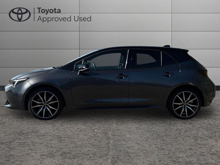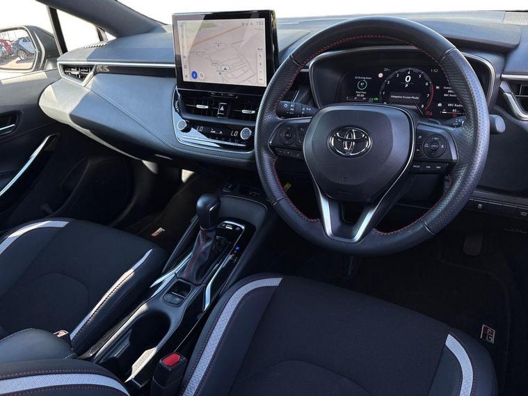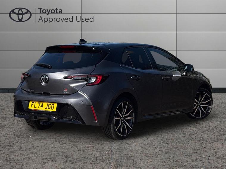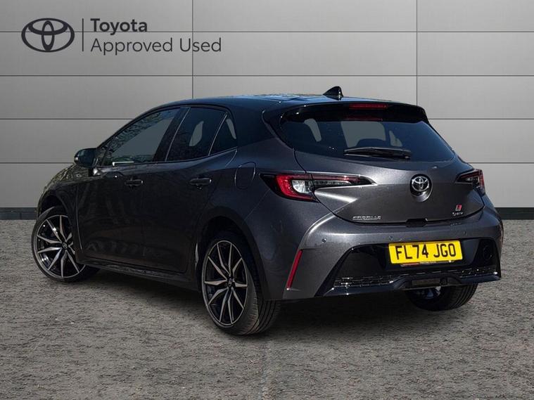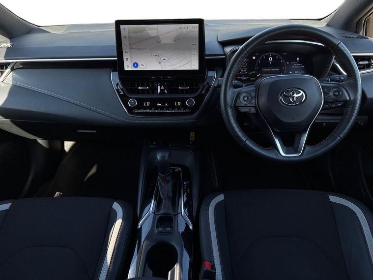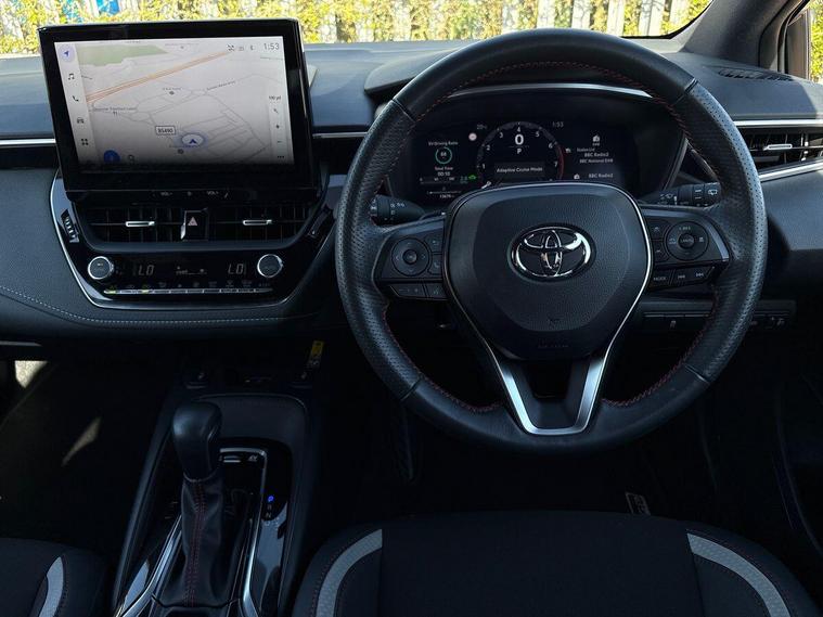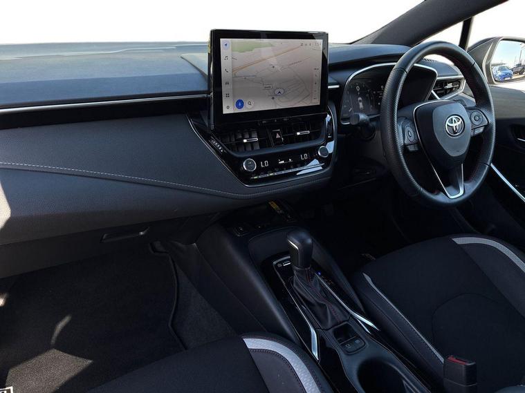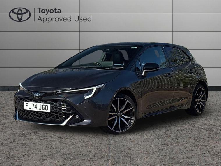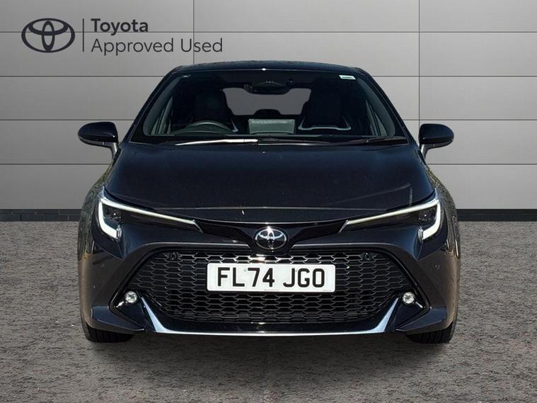 This 2024 Toyota Corolla VVT-h GR SPORT is a Toyota manufacturer approved vehicle with a full service history and only one owner from new, offering peace of mind with 18 months warranty remaining and an MOT valid until September 2027. This Euro 6 compliant model features a responsive 2.0L petrol hybrid engine, paired with the sporty GR SPORT trim. Convenience is enhanced with a smart entry system for keyless entry, automatic headlights that illuminate when needed, and dual-zone automatic air conditioning to keep all occupants comfortable. Stay connected and powered up with Bluetooth connectivity and wireless phone charging, all while enjoying the generous boot space for all your needs.Experience impressive performance with the Corolla's ability to accelerate from 0 to 62mph in just 7.4 seconds, a figure that demonstrates its dynamic capability compared to many other vehicles in its class. This GR SPORT variant is designed to offer a more engaging driving experience, blending efficiency with spirited performance. The combination of advanced technology, practical features, and Toyota's renowned reliability makes this Corolla a compelling choice for those seeking a well maintained and feature rich vehicle..