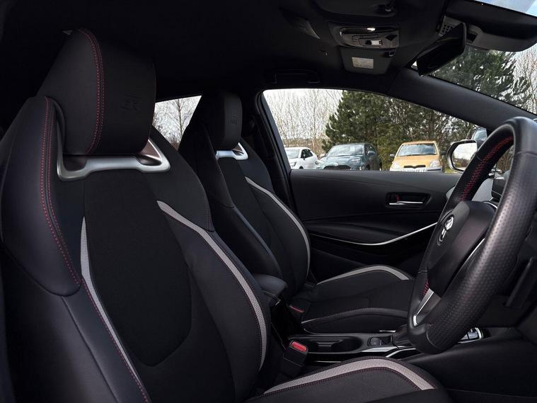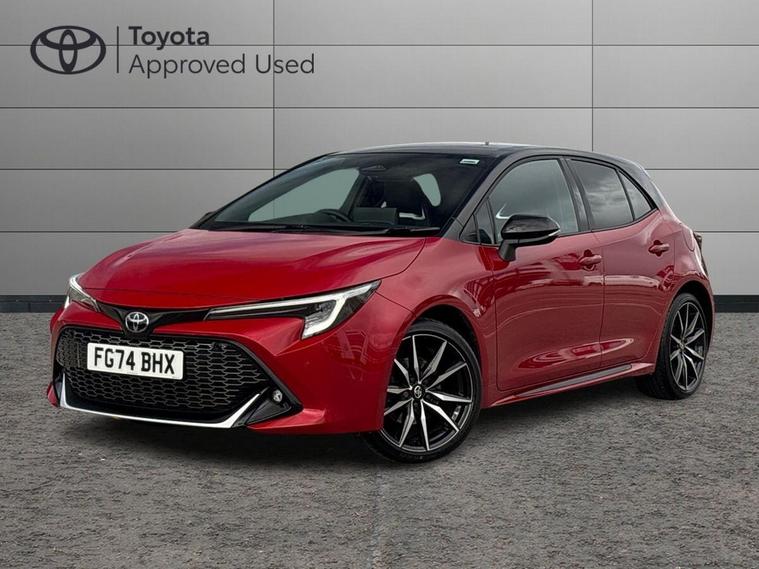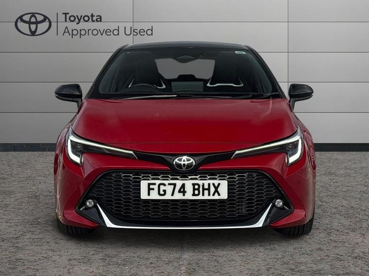 This 2024 Toyota Corolla VVT-h GR SPORT is a Toyota manufacturer approved vehicle, boasting a full service history with its last service completed on 14 August 2025 at 10, 202 miles, and benefits from an 18 month warranty for your peace of mind. This Euro 6 compliant model, with its 2.0L Petrol Hybrid engine, has had only one owner and its MOT is valid until September 2027. It comes equipped with the advanced Toyota Safety Sense suite, featuring Adaptive Cruise Control with Speed Limiter, LED headlights, and a Smart Entry System with keyless entry. Inside, you will find Dual-Zone Automatic Air Conditioning for optimal comfort.The GR SPORT trim enhances the driving experience, offering impressive acceleration from 0-62mph in just 7.4 seconds, demonstrating its capability compared to other vehicles in its class. This performance is complemented by a large boot space, making it a practical choice for everyday use and longer journeys. The combination of its efficient hybrid technology, comprehensive safety features, and sporty GR SPORT styling positions this Corolla as a superior option for discerning drivers..