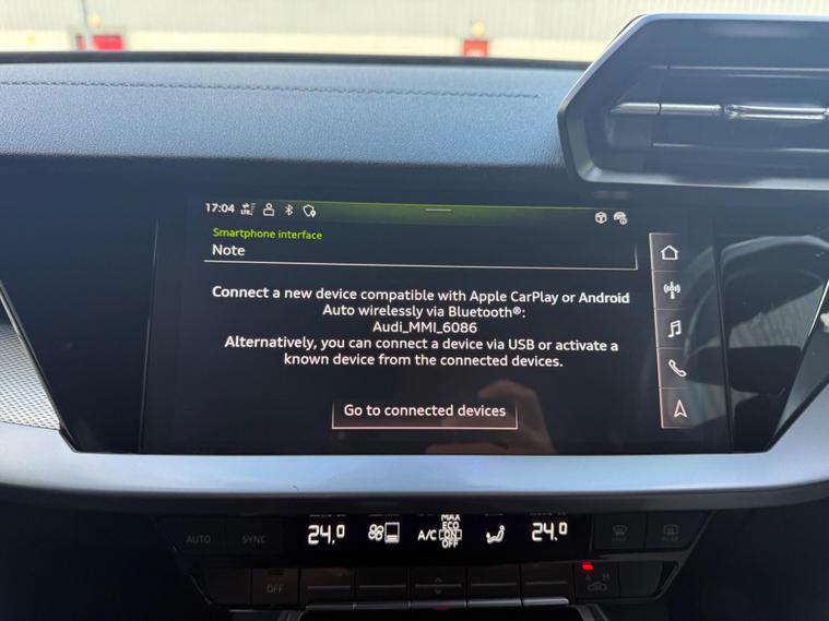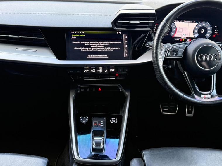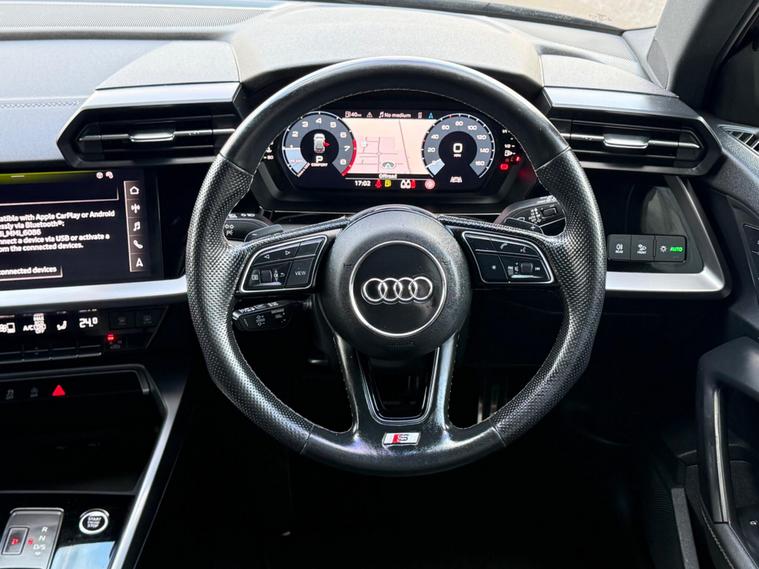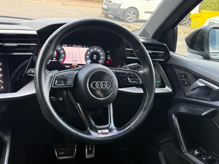 *****************************APPOINTMENTS ONLY**********************This 2023 Audi A3 TFSI S line boasts a single owner from new, offering you peace of mind. This Euro 6 compliant model features a 1.0 litre petrol engine and comes with a 3 month warranty for added security. Its vehicle history check is clear, and it will be supplied with a full 12 months MOT for your convenience.Experience the sophisticated S line trim, enhanced with striking LED headlights and dynamic rear indicators. Inside, you'll find dual zone electronic climate control to keep everyone comfortable, and the Bluetooth interface along with the Audi Smartphone Interface, including Apple CarPlay, ensures seamless connectivity. Parking is made easier with rear parking sensors, and you'll appreciate the generous boot space for all your needs. This A3 accelerates from 0 to 62mph in 10.6 seconds, demonstrating its capable performance..