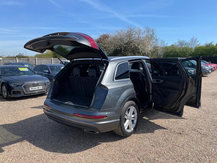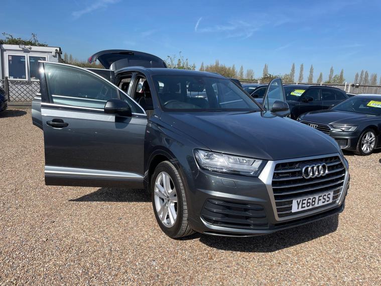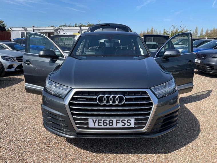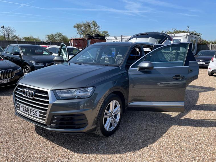 FREE 12 MONTHS AA BREAKDOWN COVER, ZERO DEPOSIT FINANCE AVAIL, Air Suspension , Just been serviced, Hpi clear, 1 Former keeper, all previous Mot's avail. We are located in CANVEY ISLAND, ESSEX SS8 0QDThis 2018 Audi Q7 TDI V6 S line offers an exceptional blend of performance and practicality, boasting a powerful 3.0L Diesel engine and a sophisticated Four Wheel Drive system. As a Euro 6 compliant vehicle, it meets stringent emission standards. Inside, you'll find a spacious cabin with seven seats, perfect for families or those needing extra versatility. The S line trim enhances the already premium feel, and notable features include electrically adjustable front seats with 4 way lumbar support and driver memory function, an Audi Phone Box with wireless charging, and dual zone electronic climate control for personalised comfort. Keyless Go with remote central locking adds to the convenience, alongside heated front seats for those colder journeys.This Audi Q7 stands out with its impressive acceleration, reaching 0-62mph in just 6.3 seconds, demonstrating its dynamic capabilities. Furthermore, its low insurance group rating indicates that running costs are kept competitive, making it an attractive proposition compared to similar vehicles. With a substantial towing weight of 3500 kg, this Q7 is not only a comfortable and capable family car but also a robust option for towing..