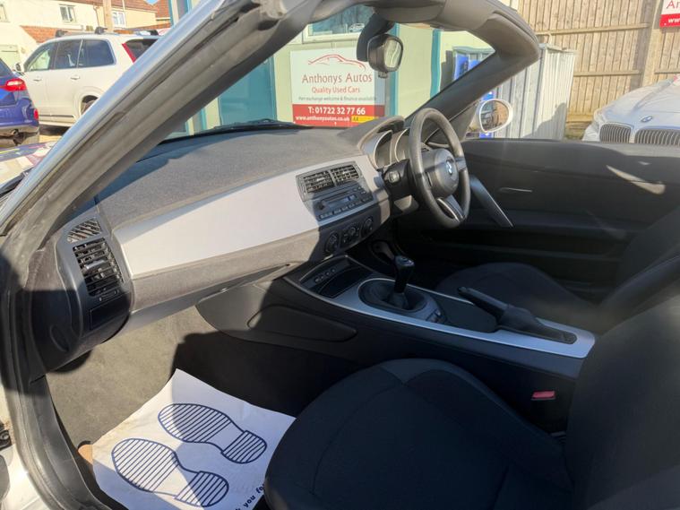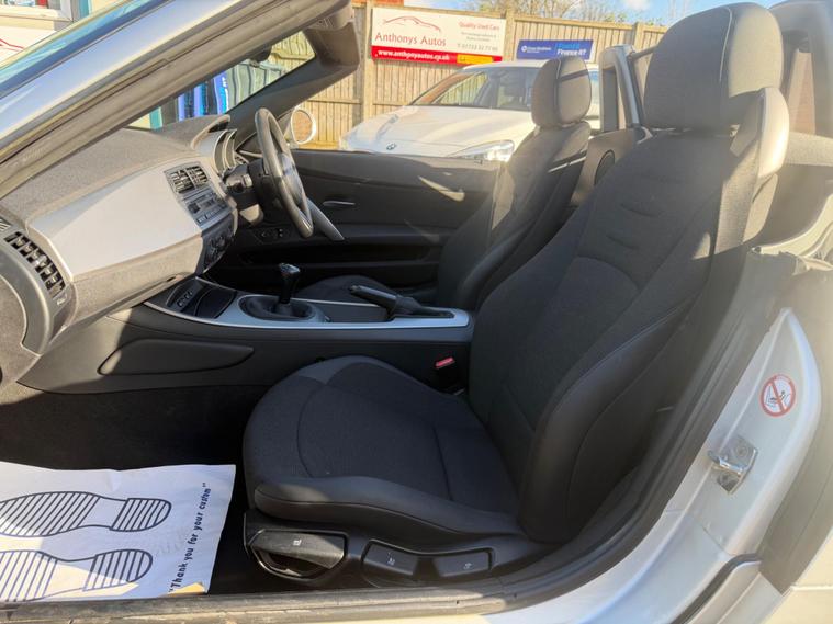 Here we have a rare opportunity to own a stunning 2005 BMW Z4 2.2i SE Euro 3 2dr Cabriolet in Silver with just 56k miles from new. Full Service History and MOT till January 2027. This BMW Z4 i SE is now considered a modern classic and offers an exceptional driving experience with its smooth 2.2 litre petrol engine. An exceptionally well maintained example with a sleek blend of style, performance and practicality. Looks Great & Drives Superb!! Comes with a 5 Speed Manual Gearbox, 167bhp, 16'' Alloys, Rear Parking Sensors, Full Black Leather interior, climate control, CD player. 2 keys, USB & AUX input and much more. Comes with a pre-delivery inspection. Free 6 months Warranty and 12 months roadside breakdown and recovery. Comprehensive warranties for 1, 2 or 3 years available. 6 months engine and gearbox warranty included. Call today to view and drive this exceptional sports car!.