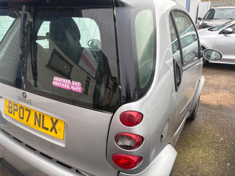 This 2007 Smart Fortwo City Passion is presented with a full 12 months MOT provided on purchase, offering immediate peace of mind. This compact 0.7L petrol model boasts a partial service history, with its last service recorded at 60, 610 miles on 19th February 2019. The distinctive Tidion Safety Cell in silver is a key visual element, complemented by practical features such as alloy wheels and front fog lights. An exterior temperature indicator with a frost warning also adds to its user friendly design.The City Passion trim level highlights the thoughtful design of this Smart Fortwo, making it a stand out choice. The inclusion of fog lights enhances visibility in adverse weather conditions, while the alloy wheels contribute to its stylish appearance. This vehicle is offered with a 3 month warranty, further assuring you of its condition and reliability..