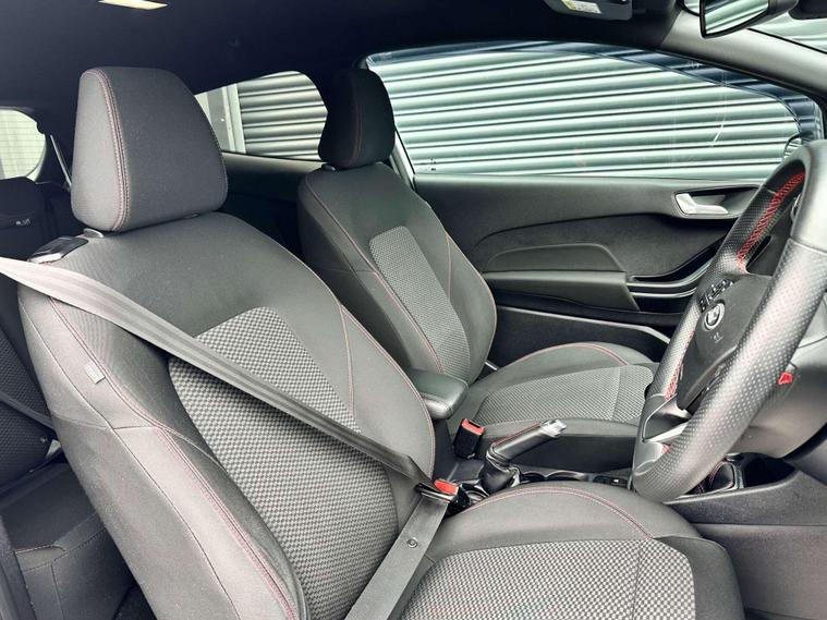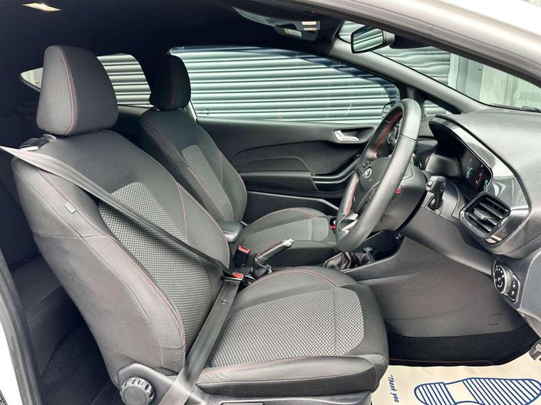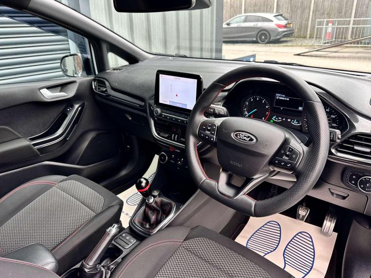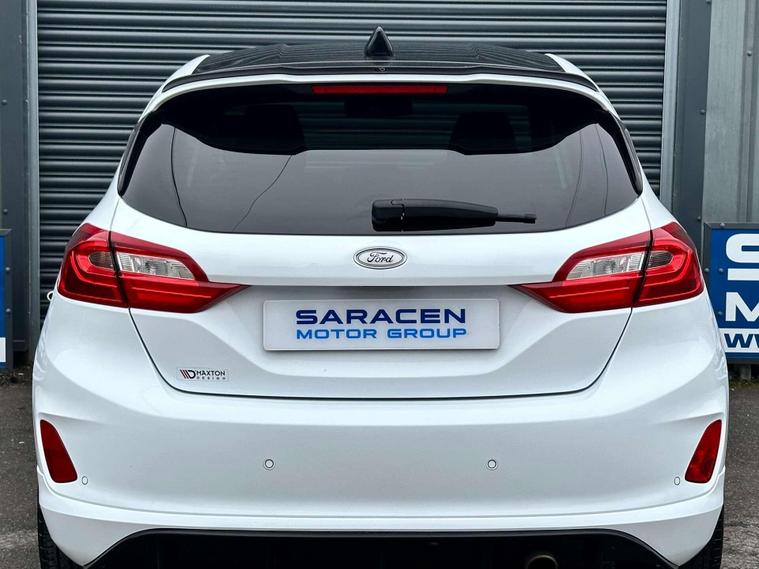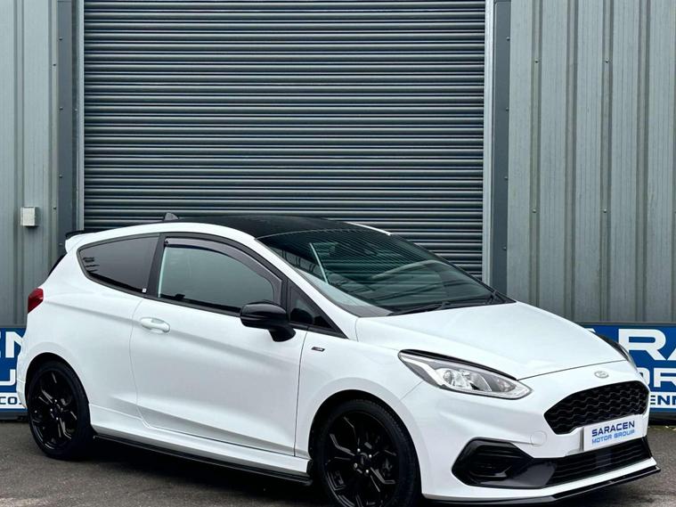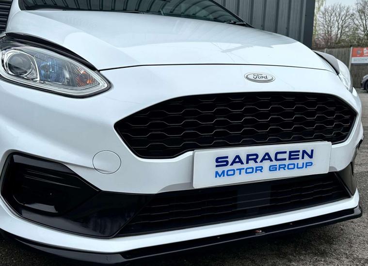 Ford Fiesta 1.0 ST-Line Edition T 3dr Euro 6 ULEZ FREE. Finished in Frozen White with black cloth interior and red contrast piping.17'' gloss black alloy wheels, Maxton Design Aero Kit, Ford Navigation System with Ford SYNC3, Apple CarPlay/ Android Auto, selectable drive modes, cruise control, rear parking sensors, electrically operated/ heated/ power folding door mirrors, privacy glass, LED DRL's, Sensico leather wrapped multifunction flat-bottomed steering wheel, automatic rain sensing wipers, air conditioning, keyless start.Here at Saracen Motor Group we have been awarded AA Platinum dealership recognition along with being nominated for best customer service by Autotrader for 2021, 2022, 2023, 2024 & 2025. We are a 5-star dealership with over 600 5-star reviews across all internet platforms including Autotrader and have been regarded as one of the best dealerships to buy from in the UK.Our preparation team inspects each vehicle to the highest level possible for its age and mileage. You can rest assured your next car has been cared for to the highest standard. Service history, V5 and the HPI certificate will all be present on viewing and collection. With our location based in Battlesbridge, Essex you can enjoy a haggle-free buying experience where you can drive away the same day if prior arranged, additional fees apply please see our website for details..