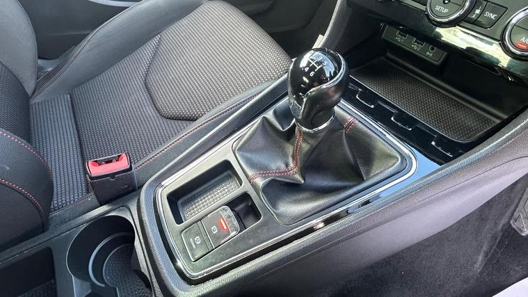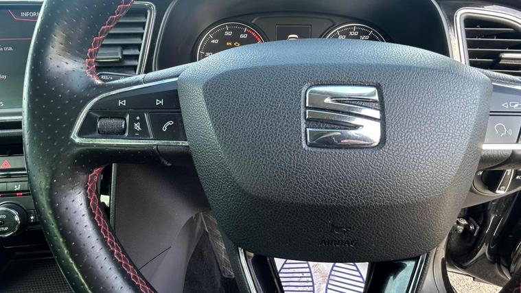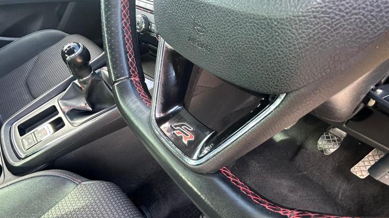 - Steering Wheel - Flat-Bottomed Perforated Leather with Red Stitching and FR Logo