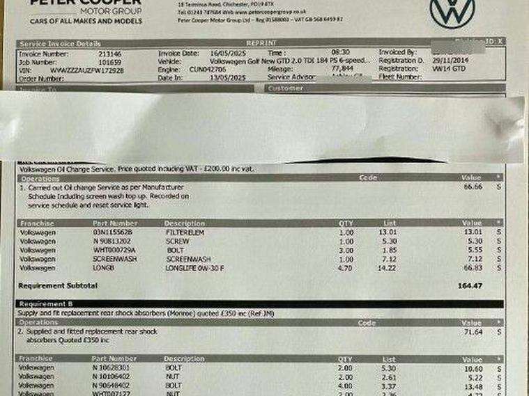 Just came in stock this fantastic 2014 Volkswagen Golf TDI GTD presents a compelling proposition, owned by the last owner for 10 YEARS and is serviced every single time with FULL Service Records, the cam belt was done by the Main VW dealership very recently, 4 BRAND new tyres and the Private Number plate will come with CAR.. A fresh Service + MOT and professional valet will be carried out.. (professional pics on its way)This Euro 6 compliant model boasts a powerful 2.0 litre diesel engine and has covered a modest 84, 300 miles, which is low for its age. Notable features include Bi-Xenon headlights with automatic dusk sensing, adaptive distance control for effortless cruising, and rear parking sensors to aid manoeuvrability. Stay connected on the go with Bluetooth telephone preparation.The performance of this Golf TDI GTD is a key highlight, achieving 0-62mph in just 7.5 seconds, demonstrating its dynamic capability. This acceleration figure indicates a more spirited driving experience compared to many similar vehicles. Furthermore, the generous boot space ensures practicality for everyday needs and longer journeys, making this a well rounded and capable hatchback.We offer | 6 Months FREE WARRANTY | Part Exchange | UK wide Delivery | Accepts Credit/debit Cards (t&c applied) | If you want any additional information, please contact us. For more stock please visit our website dealer's website