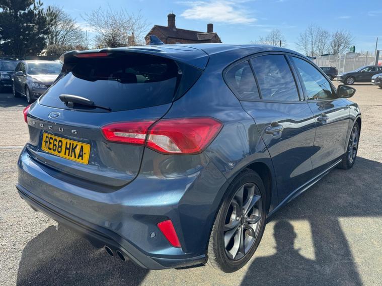 This 2018 Ford Focus ST Line offers a compelling blend of sporty styling and modern technology. Powered by an efficient 1.0 litre petrol engine, this Euro 6 compliant model boasts low CO2 emissions, making it an environmentally conscious choice. Inside, you'll find the Ford SYNC 3 DAB Radio system, complete with a vibrant floating 6.5 inch touchscreen that seamlessly integrates with both Android Auto and Apple CarPlay. The convenience of automatic headlights further enhances the driving experience, ensuring optimal visibility in varying conditions.The performance of this Focus ST Line is equally impressive, achieving 0 to 62 miles per hour in just 10.0 seconds. These highlights demonstrate how this particular Ford Focus stands out from other vehicles in its class, offering a refined and engaging drive. Its combination of advanced features, efficient performance, and sporty ST Line trim makes it a well rounded option for any discerning driver..
