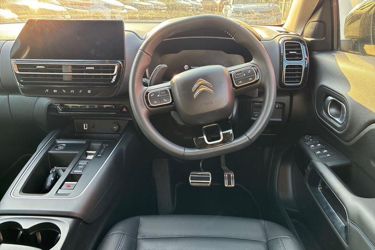 This 2023 Citroen C5 Aircross C Series Edition offers exceptional provenance with only one owner and a remarkably low mileage of just 17113 miles, all backed by a full service history and 12 months warranty. As a Citroen manufacturer approved vehicle, this 1.2 litre petrol model, compliant with Euro 6 emissions standards, combines practicality with advanced technology. Notable features include automatic headlights with welcome and goodbye lighting, an acoustic laminated windscreen with rain and brightness sensors, and the City Camera Pack which provides front and rear parking sensors along with a rear camera for effortless manoeuvring. Inside, you'll find automatic dual zone climate control for comfort and electric, heated, folding door mirrors with LED approach lighting and blind spot monitoring indicators.The C5 Aircross C Series Edition stands out with its impressive fuel economy, achieving a highlight of 46 miles per gallon, demonstrating its efficiency compared to similar vehicles. Furthermore, its generous boot space makes it an ideal choice for families or those who require ample storage. This combination of low mileage, single ownership, comprehensive servicing, and desirable features ensures this Citroen C5 Aircross is a compelling option for anyone seeking a well maintained and feature rich SUV..