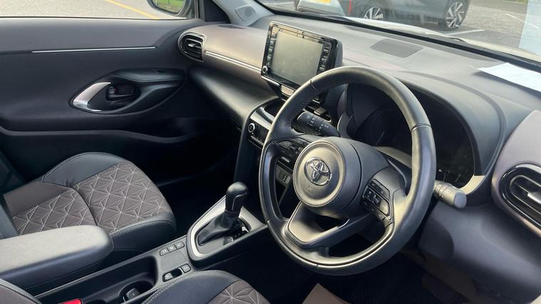This 2023 Toyota Yaris Cross VVT-h Excel is a Toyota manufacturer approved vehicle with only one owner and a full service history, offering peace of mind with a 12 month warranty. This stylish hatchback features a 1.5L petrol hybrid engine, meeting Euro 6 emission standards. Inside, you'll find convenient Smart Entry and Push-Button Start, a reversing camera with parking assistance, and a heated steering wheel for those colder days. Enjoy seamless connectivity with Bluetooth and illuminate your journey with LED projector headlights.The Yaris Cross Excel stands out with its impressive fuel economy, achieving up to 57 miles per gallon, and benefits from a low insurance group, making it an economical choice. Its low CO2 emissions also highlight its efficiency and environmental consideration compared to similar vehicles. This well maintained, single owner vehicle represents a smart and practical option for any driver..