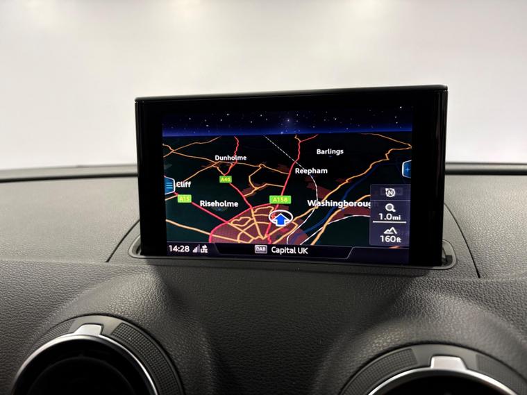 Only 2 owners from new and will have a fresh service and MOT as part of our internal preparation, finished in metallic monsoon grey with black cloth interior and supplied with 2 keys, enhanced by Xenon headlights with LED daytime running lights and automatic on functionality. Inside, you'll find convenient features such as rear parking sensors, an auto dimming rear view mirror, and air conditioning, all controlled with ease. The Bluetooth interface ensures seamless connectivity for your devices.The Audi A3 TFSI SE Technik stands out with its exceptional fuel economy, achieving a remarkable 57 miles per gallon, which is better than many vehicles in its class. Its low CO2 emissions also contribute to its appeal. For those needing practicality, the generous boot space provides ample room for luggage or shopping. Performance is also a strong point, with an acceleration of 0 to 62 miles per hour in just 8.2 seconds, demonstrating a good balance of efficiency and responsiveness..