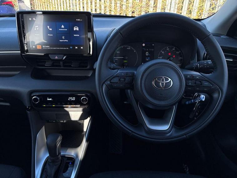 This 2026 Toyota Yaris VVT-h Icon is a truly exceptional example, boasting an incredibly low mileage of just 1565 miles and a recent service completed on 21st January 2026 at only 10 miles, ensuring it is in prime condition. As a Toyota manufacturer approved vehicle with a full service history and only one owner from new, you can be assured of its excellent provenance. This Euro 6 compliant Yaris is equipped with a 1.5L petrol hybrid engine, offering remarkable efficiency. Its MOT is valid until January 2029, and it comes with a substantial 34 months of warranty remaining. Notable features include automatic headlights, smartphone integration with Apple CarPlay and Android Auto, Bluetooth connectivity, adaptive cruise control for effortless journeys, and a reversing camera to aid parking.The highlights of this Toyota Yaris VVT-h Icon demonstrate its superiority over other vehicles in its class. Its outstanding fuel economy of 91 mpg means significantly lower running costs, while its low CO2 emissions contribute to a greener drive. Furthermore, its low insurance group rating makes it an economical choice for everyday motoring. These combined factors make this Yaris a smart and practical choice for any discerning driver..