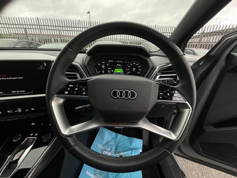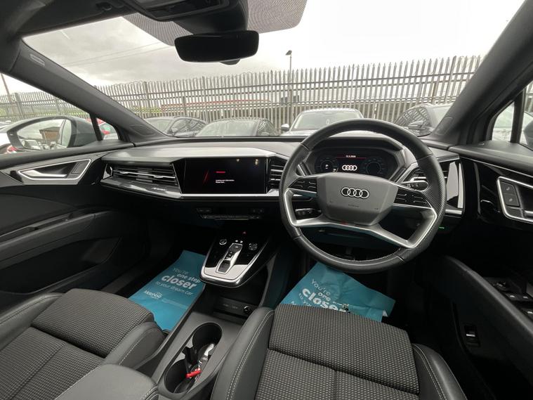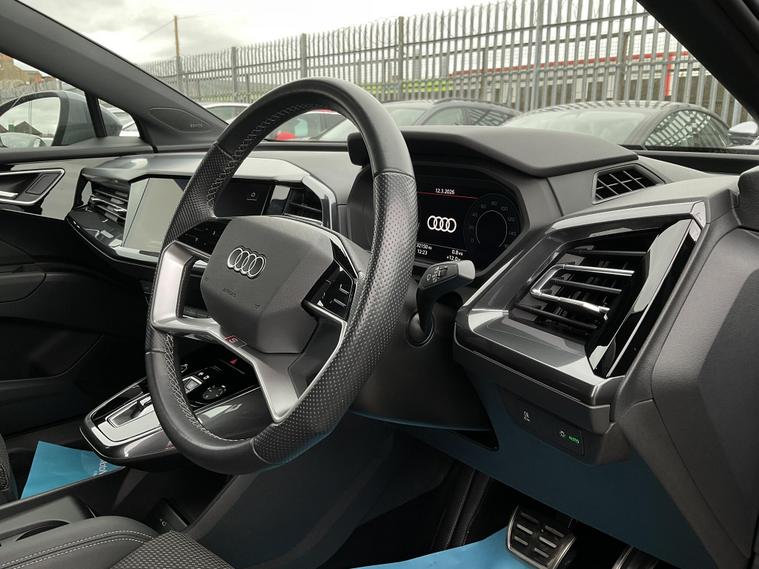 Discover this 2023 Audi Q4 e-tron S line, a premium electric vehicle offering an impressive battery maximum range of 311 miles. This S line variant combines sophisticated styling with advanced electric performance, featuring an 82 kWh battery that provides ample power for your journeys. Charging at home with a 7kW charger will take approximately 11 hours and 30 minutes for a full charge, while rapid public charging can replenish the battery from empty to 80% in as little as 30 minutes, ensuring you spend less time waiting and more time driving.The Audi Q4 e-tron S line stands out with its generous boot space, making it a practical choice for families and those who need extra room for luggage or shopping. The highlighted 311 mile range indicates superior capability compared to many other electric vehicles, offering greater flexibility and peace of mind on longer trips. This model represents an excellent opportunity to experience Audi's commitment to electric innovation and luxury..