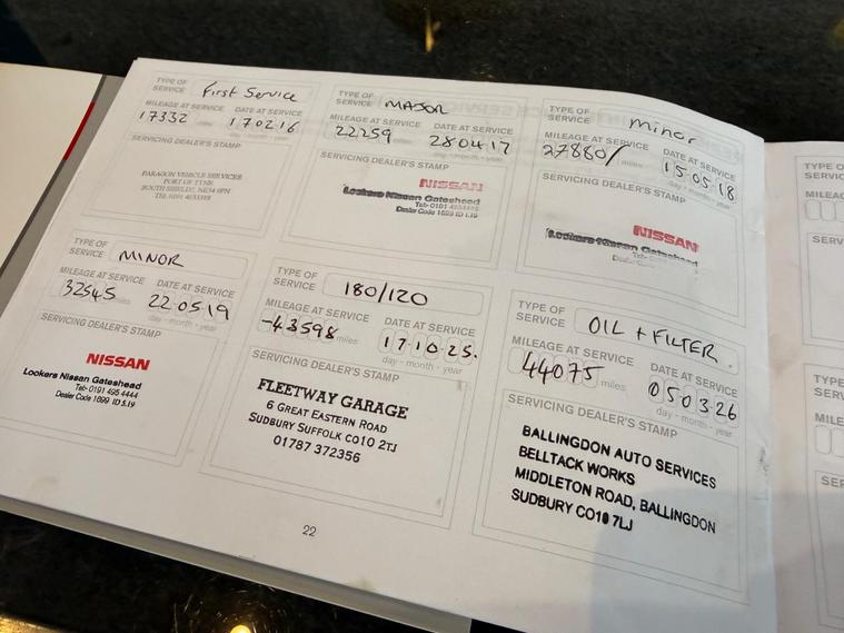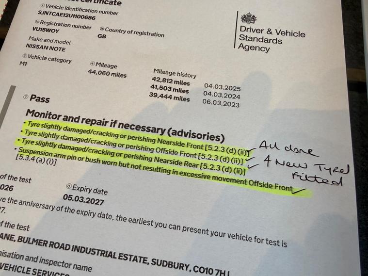 Chartwell's are pleased to offer this lovely low mileage Nissan note 1.5dCi Tekna for sale. This stunning local car was part exchanged by previous customer of ours. With only 2 previous owners from new the car comes complete with a full service history including a fully stamped service book (As shown in photos). The last service was completed on 05/03/2026 at 44, 075 miles which included 4 matching brand new tyres. These very reliable chain driven cars have no Cambelt change to worry about. The current MOT runs until 05/03/2027 passing with only advising on tyres which we have now replaced Drives superb. This car is in excellent condition throughout. Finished in a lovely metallic grey the car offers someone excellent value. Very cheap car to run and own with only £20 per year road tax. Clearly a car that has been very we'll looked after. High spec includes the Metallic paint, 17'' Alloys, Keyless entry, Keyless start, Privacy glass, Leather/Cloth seats with stitching, height adjustable drivers front seat, Automatic lights, Steering wheel controls, Cruise control, Remote locking, Factory Satellite navigation, Reverse Camera, Bluetooth mobile phone connectivity, DAB Radio - CD Player -USB - AUX , Dual climate control, Air conditioning, Electric windows, Electric heated mirrors, and much much more. We have the full book pack with a fully stamped service book and 2 remote locking keys. The car is HPI clear with the printout available. We are an approved AA dealer. All our cars come with free 12 months AA breakdown cover. Drive-away insurance is now offered through the AA. , Our cars (not commercial) come with a 3-month/3000 miles warranty as standard unless explicitly sold as a trade sale. We do offer extended warranties through WarrantyWise for 6 months - 2-year terms. For more information please call..