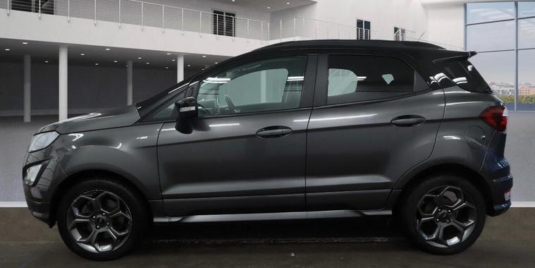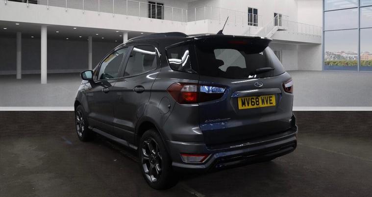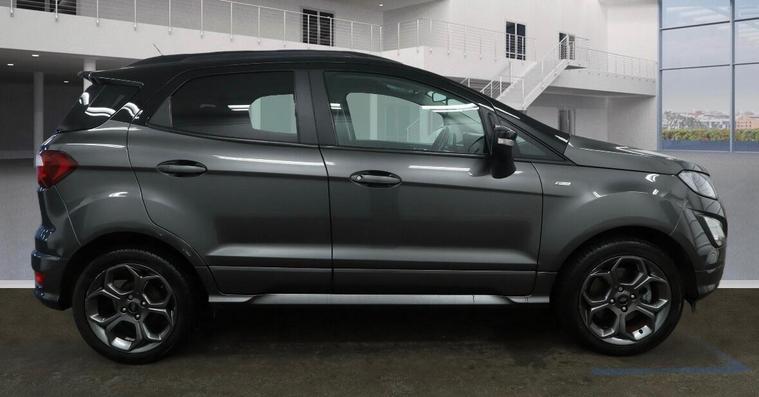 This 2018 Ford EcoSport T ST-Line offers a compelling blend of style and technology, making it a standout choice. Powered by an efficient 1.0L petrol engine and meeting Euro 6 emission standards, this ST-Line trim vehicle is equipped with a helpful rear view camera and rear parking sensors, complete with parking assistance. Inside, you'll find the convenience of Electronic Automatic Temperature Control for a comfortable cabin environment, alongside a Ford DAB Navigation System featuring Ford SYNC3, which seamlessly integrates with Android Auto and Apple CarPlay, and offers Bluetooth connectivity.Experience enhanced driving dynamics with the Select Shift Sports Mode Technology and paddle shift steering wheel, allowing for a more engaging drive. This EcoSport achieves an impressive fuel economy of 46 miles per gallon, a figure that highlights its efficiency compared to other vehicles in its class. Furthermore, its low CO2 emissions indicate a more environmentally conscious performance, making it a sensible and appealing option for everyday motoring..
