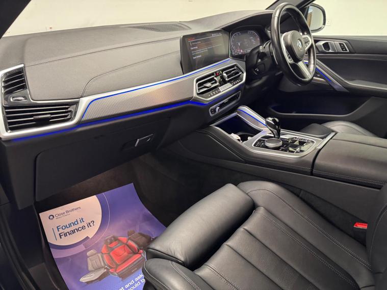 This 2022 BMW X6 30d M Sport presents an exceptional ownership proposition with its remarkably low mileage of just 14349 miles, having been cherished by only one owner. This impressive four wheel drive SUV boasts a powerful 3.0L Diesel Hybrid engine, meeting Euro 6 emission standards. Its M Sport trim level enhances its dynamic appeal, while the inclusion of the Technology Package, featuring a Head Up Display, ensures a connected and informed driving experience.Further enhancing its practicality and comfort, this X6 comes equipped with a Parking Assistant, complete with a rear camera and rear sensors, making manoeuvring effortless. Adaptive LED Headlights, including automatic activation via a rain sensor, provide excellent visibility in all conditions, and front seat heating ensures comfort during colder journeys. The generous boot space offers ample room for all your needs, and with an acceleration of 0-62mph in just 6.1 seconds, this vehicle offers a superior blend of performance and everyday usability compared to similar models..