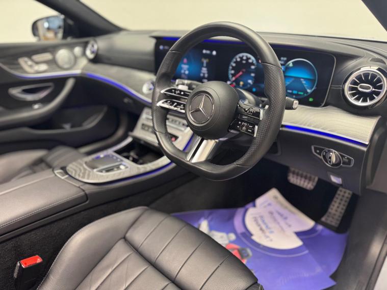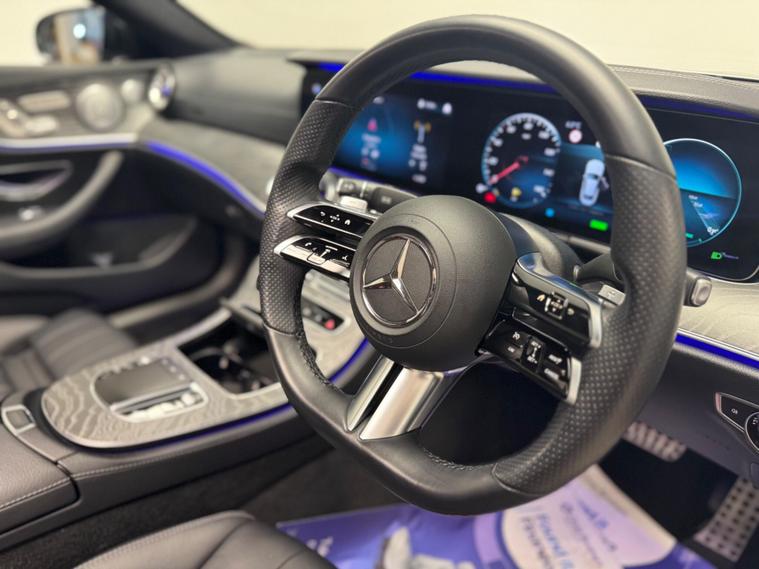 This 2021 Mercedes Benz E Class E300h AMG Line Night Edition (Premium Plus) has had only one owner from new, offering a pristine example of this sophisticated saloon. Powered by a 2.0L Petrol Hybrid engine and meeting Euro 6 emissions standards, this vehicle combines efficiency with performance. The AMG Line Night Edition trim enhances its sporty appeal, while the Premium Plus designation ensures a wealth of advanced features.You will appreciate the convenience of Active Park Assist, complete with front and rear sensors, and the comprehensive Parking Package featuring a 360-degree camera for effortless manoeuvring. Inside, the Memory Package allows you to save your preferred seat settings, and the Wireless Charging pad keeps your devices powered up. Seamlessly integrate your smartphone with Android Auto or Apple CarPlay, and enjoy the generous boot space, perfect for all your luggage needs..
