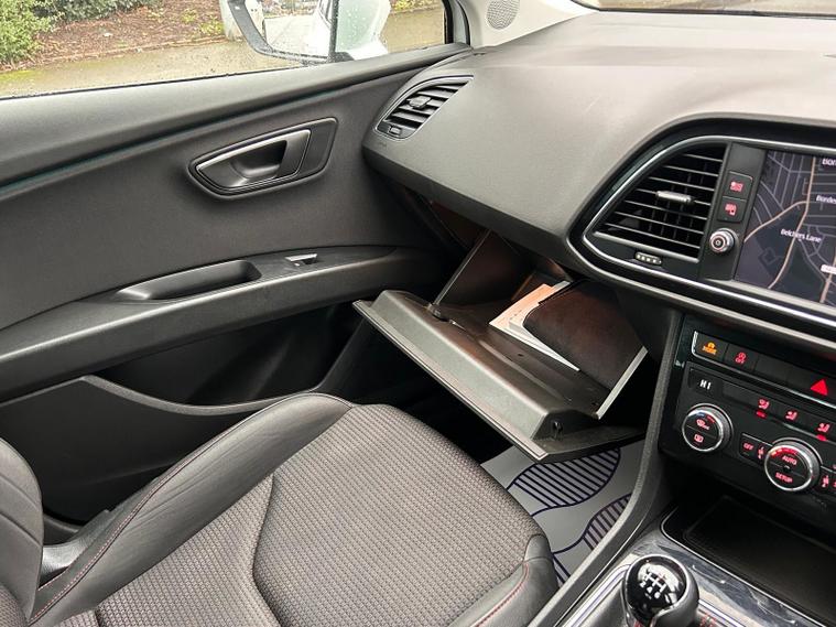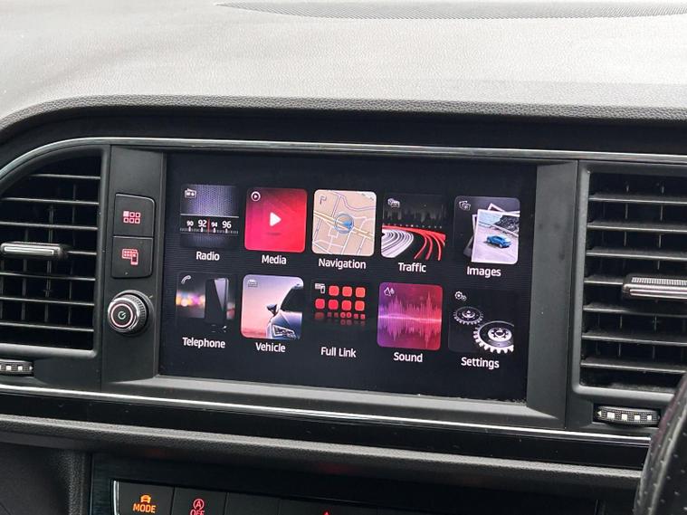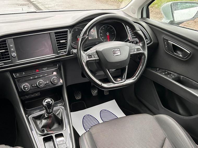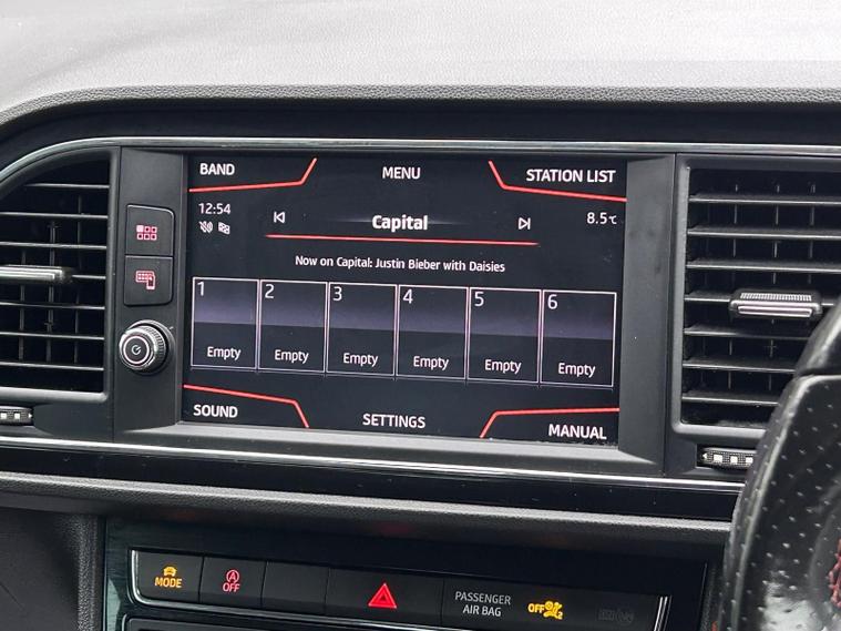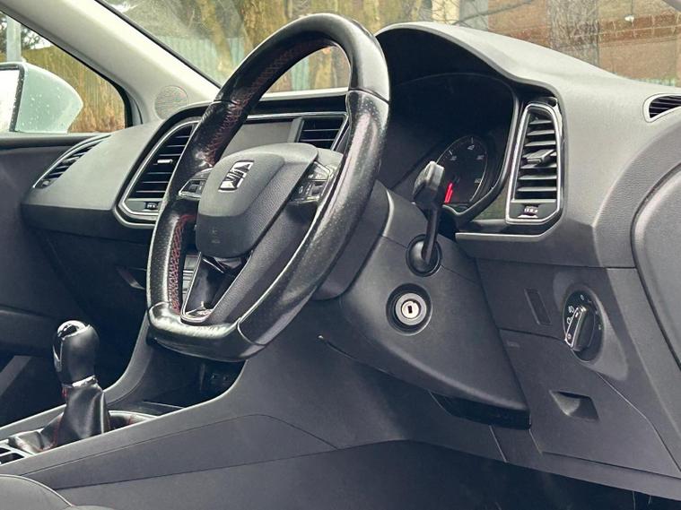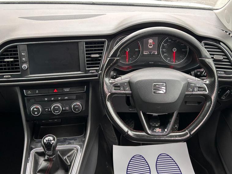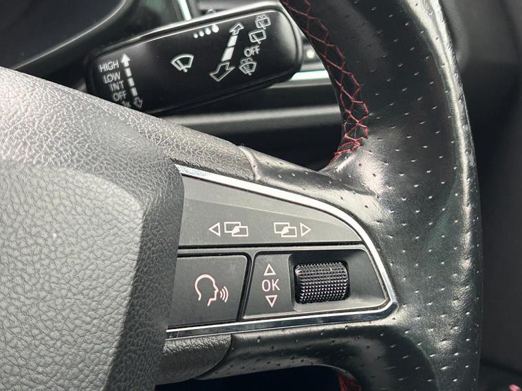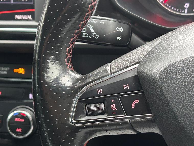 - Steering Wheel - Flat-Bottomed Perforated Leather with Red Stitching and FR Logo