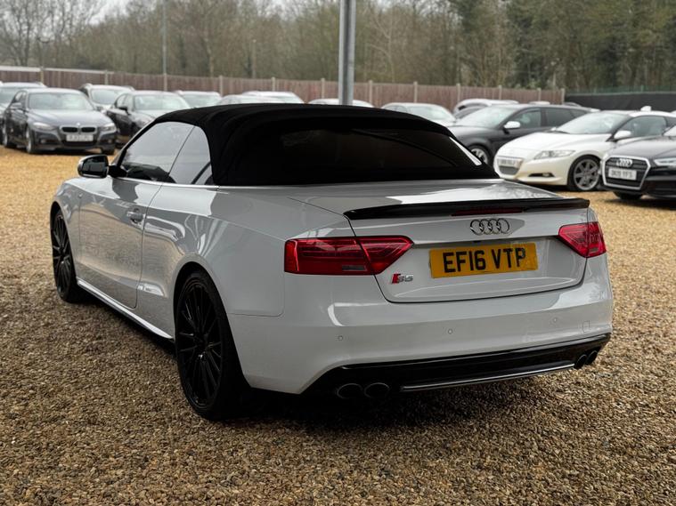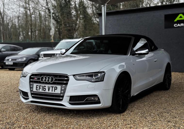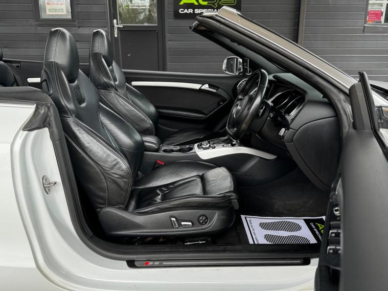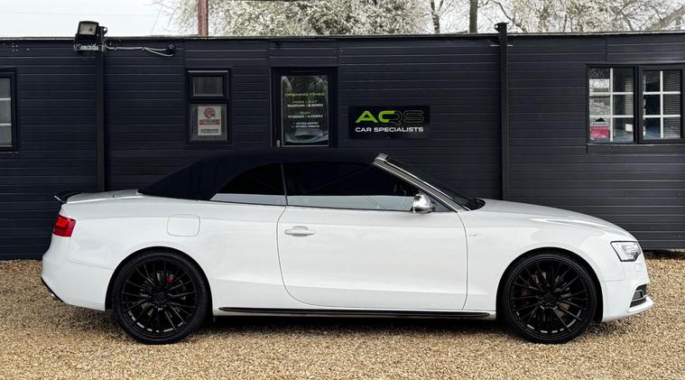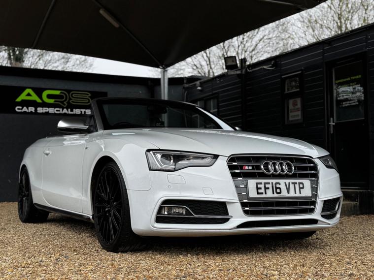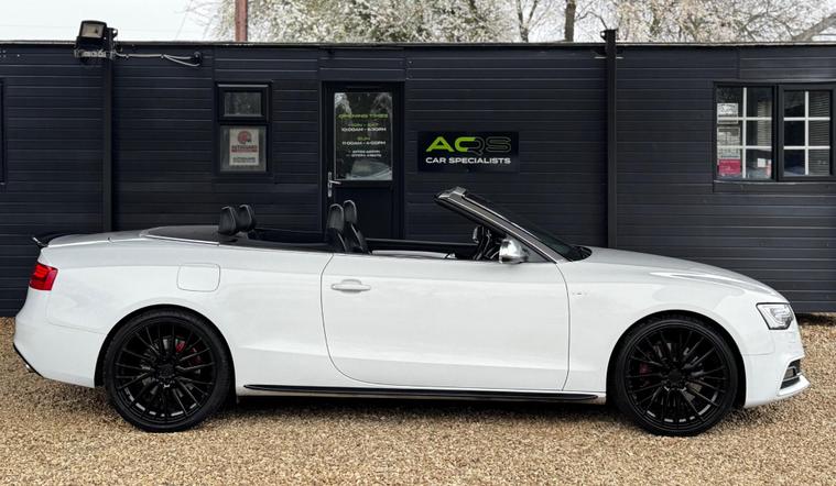 Here at AQS Car Specialist we take pride in being one of the few highly rated dealers for our customer service from Autotrader working closely together so we can go the extra mile to make sure you are getting the best service out there. All vehicles undergo a full visual and Mechanical health inspection, driven and tested. All essential work carried out with no expense spared. We offer an extended nation wide warranty with the option to extend up to 36 months, giving our customers full peace of mind and security when purchasing a car from AQS car specialists.Any inspection welcome, Test drive welcome, Part exchanges welcome. All dealer facilities available on site. Here at AQS Car Specialist we are delighted to offer this stunning looking example of an Audi S5 3.0 TFSi V6 Cabriolet S Tronic Quattro. Finished in White with a contrasting full Black leather interior alongside newly refurbished 20 inch Black alloys. Recently serviced and comes with a partial history (3 Stamps) as well as a long MOT with no advisories. In fantastic condition both inside and out, this is an excellent example of how an Audi S5 should drive ! These S5's are renown for their sleek design, stylish cabin and having exceptional performance while still being reliable ! This particular example benefits from being fitted with some must have features which include, 3-Zone Climate Controlled Air Conditioning, Cruise Control, Sat Nav, Bluetooth Connectivity, DAB Radio, USB Input, Auto Bi-Xenon Plus Headlights, Auto Wipers with Rain Sensors, Reverse Camera, Front and Rear Parking Sensors, MultiFunctional Steering Wheel with Paddle Shifters, Electrically Adjustable and Heated Front SuperSports Seats, AutoDimming RearView Mirror, Heated and PowerFolding Side Mirrors, Full S Line Styling from Factory, S Line Suspension and the super handy Split Fold Rear Bench amongst all the usual Audi refinements..