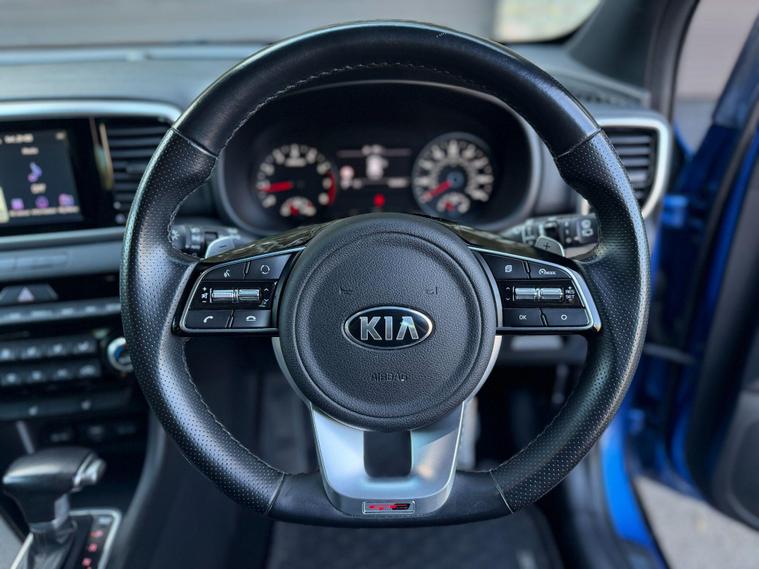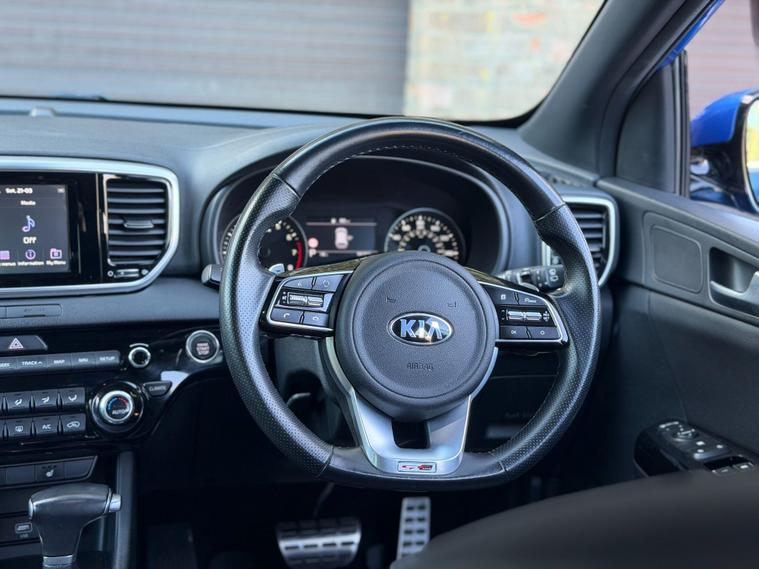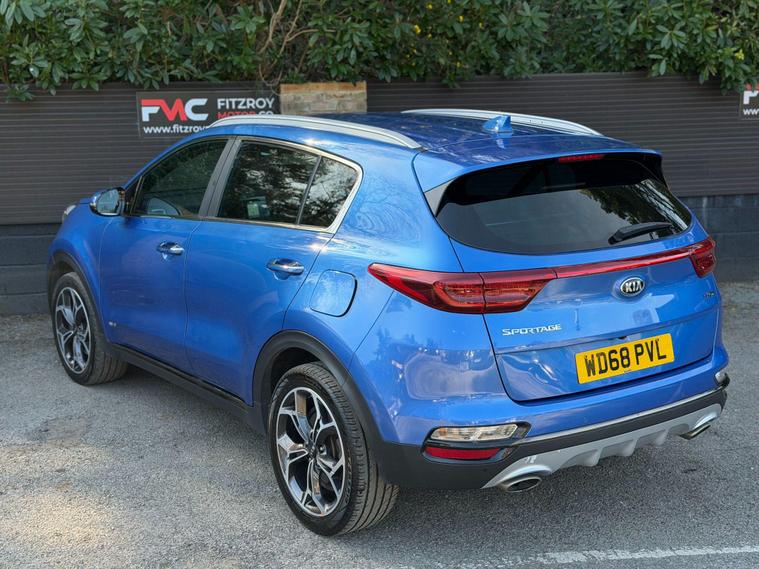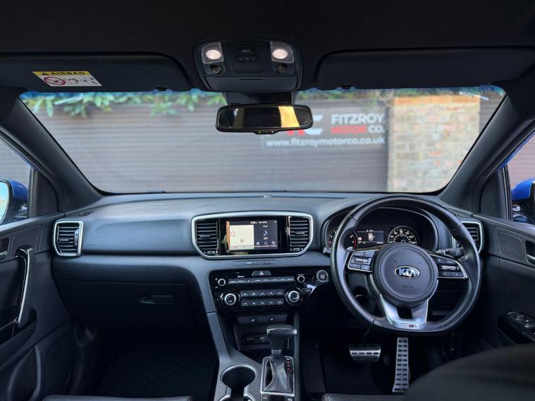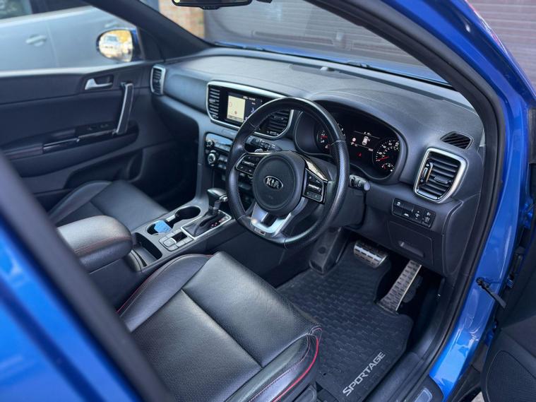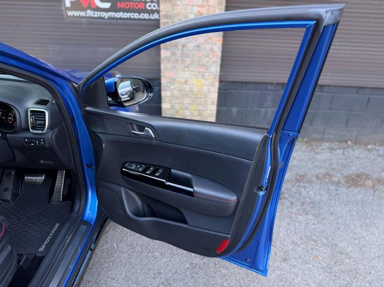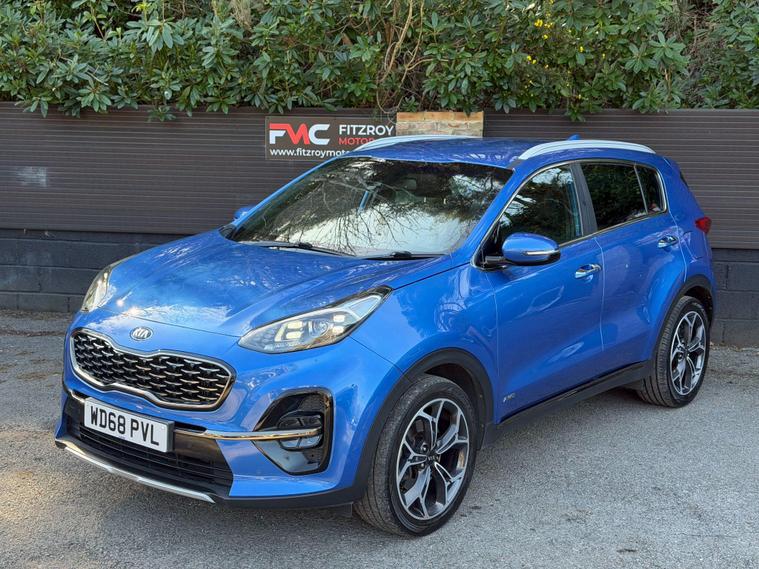 We are delighted to offer this Kia Sportage 1.6 GT Line DCT Petrol Automatic, a stylish and well equipped SUV that combines sporty design, comfort, and modern technology. Supplied with a full service history and 2 keys, this Sportage has been well maintained and presents very well throughout.Finished in blue with diamond cut alloy wheels and rear privacy glass, this GT Line model has a strong and sporty road presence. The smooth automatic gearbox paired with the responsive 1.6 petrol engine delivers a comfortable yet engaging driving experience, making it ideal for both daily use and longer journeys.Inside, the cabin is finished in black leather with heated seats, offering excellent comfort for driver and passengers. It is well equipped with lane assist, cruise control, Apple CarPlay, Bluetooth audio and handsfree connectivity, along with DAB, FM and AM radio. Parking is made easy with a reversing camera and parking sensors, while features such as auto hold and selectable drive modes add to the overall driving experience.This Kia Sportage GT Line offers a great balance of style, performance, and practicality, making it an excellent all round family SUV.At Fitzroy Motor Co, all our vehicles are hand picked and purchased directly from private customers. Every vehicle is HPI clear with a report provided for your peace of mind. Each car undergoes a thorough inspection and is prepared for same day pickup. If a vehicle has six months or less MOT remaining, we provide a fresh 12 month MOT.Nationwide delivery is available from £149 and finance options are available from 8.9 percent APR with zero deposit plans.We are open seven days a week. Call us on 01425318542 to arrange a viewing or test drive..
