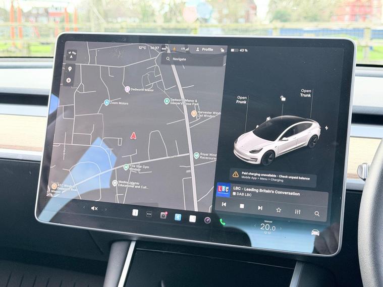 This 2020 Tesla Model 3 Long Range presents an exceptional opportunity with its remarkably low mileage of just 33, 000 miles. As an electric vehicle, it boasts a four wheel drive drivetrain and a substantial 78 kWh battery, offering an impressive maximum range of 348 miles when new. This Model 3 comes with a clear vehicle history check, providing peace of mind. Notable features include adaptive cruise control, Bluetooth connectivity, 12 way power adjustable front and rear heated seats, keyless go, and a park assist camera, ensuring a comfortable and convenient driving experience.The Long Range variant of this Tesla Model 3 is designed for efficiency and performance. Charging at home with a 7kW charger takes approximately 12 hours for a full charge, while rapid public charging can take you from empty to 80% in as little as 26 minutes. The extensive range of 348 miles highlights its capability for both daily commutes and longer journeys, setting it apart from many other electric vehicles. The combination of its advanced technology, low mileage, and impressive electric range makes this Model 3 a compelling choice for those seeking a premium electric car..