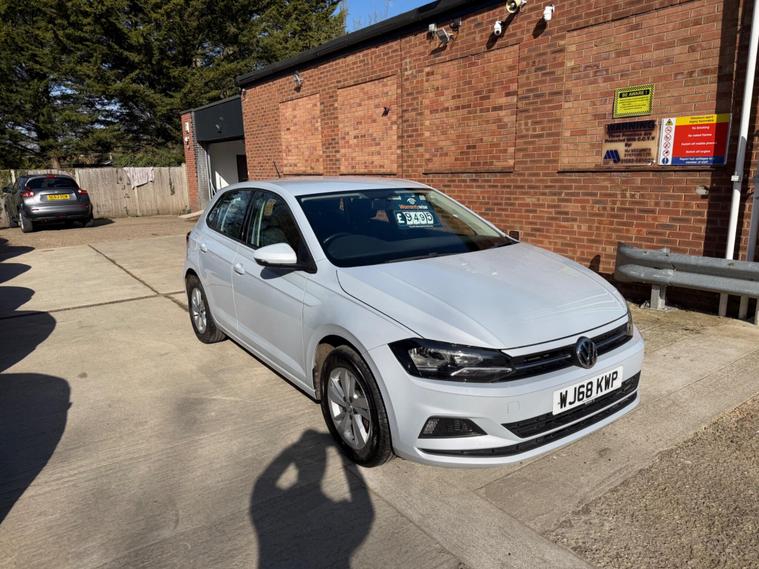 **Volkswagen Polo 1.0 TSI SE Euro 6 (s/s) 5dr****Registration:** WJ68KWP**Year:** 2018 (68)**Mileage:** 69, 520 miles**Fuel:** Petrol**Transmission:** Manual**Colour:** Silver**Owners:** 2 Owners**ULEZ:** Compliant**Price:** £9, 495---**Vehicle details:**• 69, 520 miles• 2 owners from new• Partial service history• Last serviced on 18/11/2025 at 67, 277 miles• MOT valid until September 2026• Clear vehicle history check• Euro 6 – ULEZ compliant• Efficient 1.0 TSI petrol engine• Excellent fuel economy – up to 64 MPG• Low CO₂ emissions• Low insurance group – economical to insure• **3 MONTHS AA WARRANTY AND 12 MONTHS AA BREAKDOWN COVER**---**Features and equipment:**• SE specification• Park Assist with front and rear parking sensors• Adaptive Cruise Control• Active Info Display (digital cockpit)• Convenience Pack – automatic headlights• Air conditioning• Bluetooth phone connectivity• DAB radio• Multifunction steering wheel• Electric windows• Electric mirrors• 15'' alloy wheels• Large and practical boot space---A **modern and well equipped Volkswagen Polo SE**, offering excellent fuel efficiency, advanced driver assistance features and a comfortable interior. Ideal for drivers looking for a **reliable, economical and practical hatchback**.---**WE DO PART EXCHANGE****WE ALSO BUY CARS – BEST QUOTATIONS OFFERED****For more available cars:* dealer's website / Call:** 01223964083**Location:** CB24 9LQ.