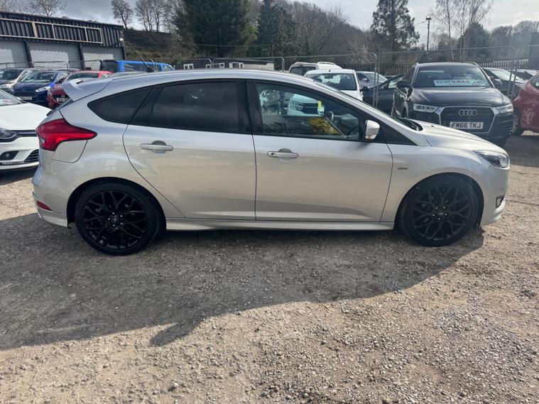 This 2017 Ford Focus T ST-Line offers an impressive fuel economy of 60 miles per gallon, making it a very economical choice. This particular model is a Euro 6 compliant vehicle, powered by a 1.0 litre petrol engine. Inside, you'll find an 8 inch TFT touchscreen featuring Ford SYNC2, which includes Bluetooth connectivity for your convenience. The Focus also boasts a generous boot space, perfect for carrying luggage or shopping.The low CO2 emissions of this Ford Focus are a significant advantage, indicating its environmental efficiency compared to many other vehicles. Combined with its excellent fuel economy of 60 mpg, this Focus T ST-Line presents a compelling package for those seeking a practical and cost effective car. Its ST Line trim adds a sporty appeal, while the ample boot space ensures it's ready for everyday life and longer journeys..