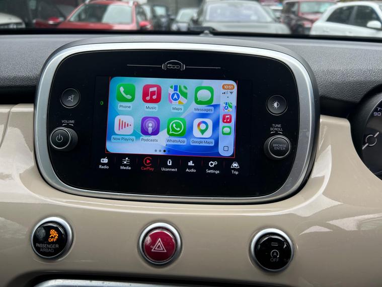 This 2019 Fiat 500X FireFly Turbo City Cross is a stylish and practical choice, boasting a Euro 6 compliant 1.0 litre petrol engine. As a City Cross trim, it offers a comfortable driving experience enhanced by automatic dual zone climate control and rear parking sensors for added convenience. Inside, you'll find a 7 inch HD touchscreen DAB radio featuring Bluetooth connectivity, USB and AUX inputs, along with seamless Apple CarPlay and Android Auto integration, keeping you connected on every journey.This particular Fiat 500X stands out with its low CO2 emissions and placement within a low insurance group, indicating it is more economical to run and insure than many comparable vehicles. These factors, combined with its user friendly technology and comfortable features, make this 500X a sensible and enjoyable option for everyday driving..