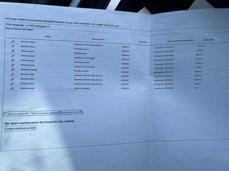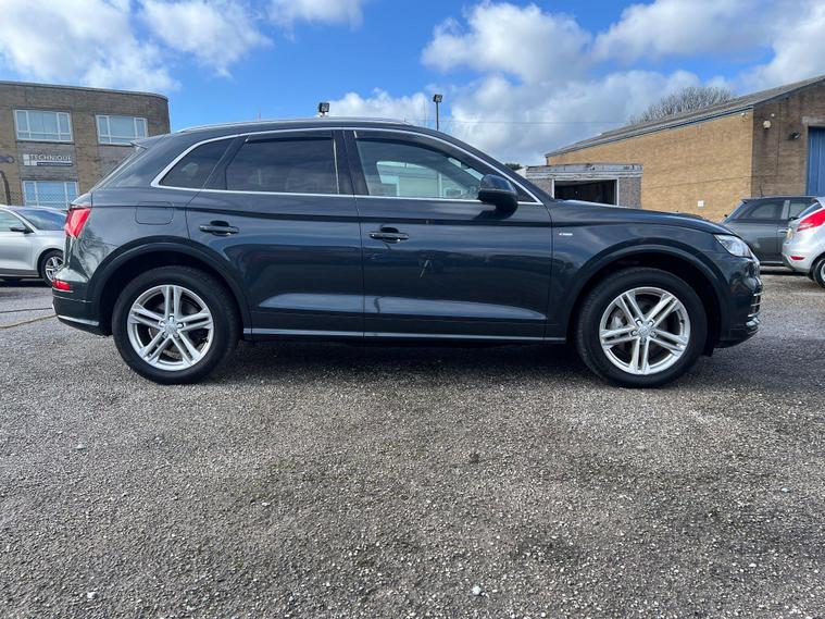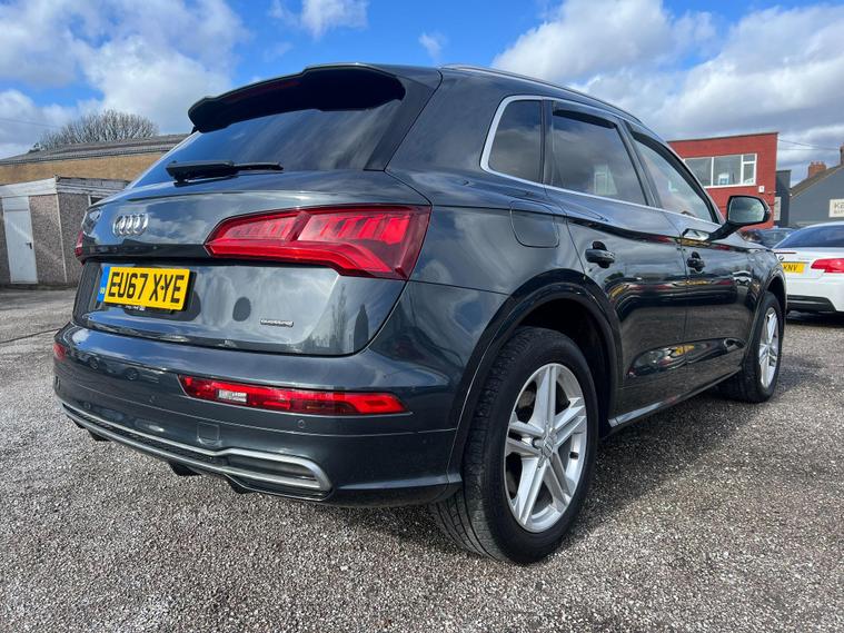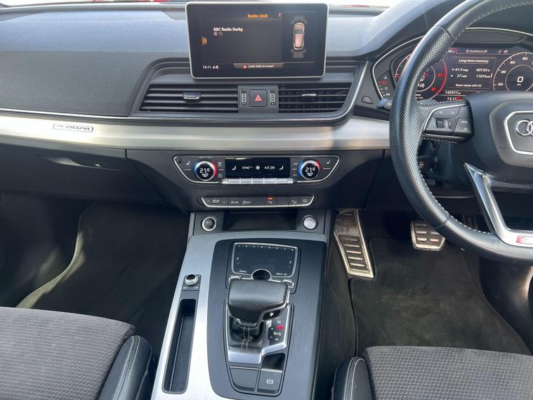 Boasting a full dealership service history, this 2017 Audi Q5 TDI S line offers exceptional provenance for discerning buyers. This four wheel drive model is equipped with a powerful yet efficient 2.0 litre diesel engine, meeting Euro 6 emission standards. Its S line trim level ensures a premium feel, complemented by notable features such as the comprehensive Parking Assistance Pack with a 360 degree camera, front and rear sensors, and the convenience of heated front seats. You'll also appreciate the Deluxe 3 zone climate control and the stylish 19 inch alloy wheels in a 5 arm wing design, all contributing to a refined driving experience.This Audi Q5 excels with impressive performance and practicality. Its fuel economy is a highlight, achieving up to 55 miles per gallon, which indicates it is more economical than many similar vehicles. The acceleration is also noteworthy, reaching 0 to 62 miles per hour in just 7.9 seconds, demonstrating its responsive power. Furthermore, this model offers substantial boot space, making it ideal for families or those needing ample storage. Its low CO2 emissions further enhance its appeal, positioning it as a more environmentally conscious choice. With a towing weight capacity of 2400 kg, it is also well equipped for a variety of needs..