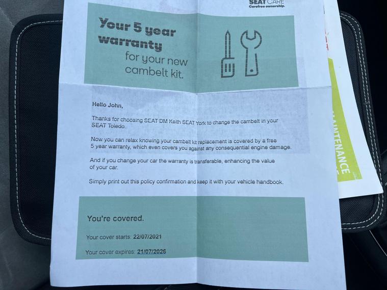 This 2016 SEAT Toledo TSI Style Advanced boasts a full dealership service history from its single owner, ensuring excellent provenance. The cambelt was replaced in 2021. This well appointed model features a 1.2 litre Euro 6 compliant petrol engine, offering a blend of efficiency and performance. Inside, you'll find comfort and convenience with climate control and KESSY keyless entry and go. For seamless connectivity, it includes Bluetooth for both phone calls and audio streaming, factory naviagtion and is complemented by front & rear parking sensors.The Toledo TSI Style Advanced delivers impressive highlights that set it apart. Its fuel economy is a notable 58 miles per gallon, indicating it is more economical than many similar vehicles. You will also appreciate the generous boot space, perfect for luggage or shopping. With low CO2 emissions, this SEAT Toledo is also kinder to the environment. Furthermore, its acceleration from 0 to 62 miles per hour in just 9.9 seconds shows it offers a responsive driving experience..