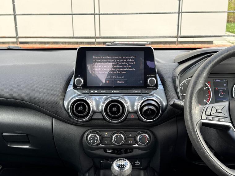 This 2020 Nissan Juke DIG-T Acenta is a standout choice, boasting exceptionally low mileage for its age, having covered just 26, 360 miles. This one owner vehicle, registered in 2020, features a 1.0 litre petrol engine and meets Euro 6 emission standards. Inside, you'll find practical features like front and rear door pockets with drinks bottle holders, grab handles for the passenger and rear occupants, and a 12V socket. For your entertainment and connectivity, it includes Bluetooth, USB and Aux inputs, DAB radio with four speakers, and Connected Services with WiFi.The Juke DIG-T Acenta offers impressive fuel economy, achieving an excellent 48 miles per gallon, which is a significant advantage over many other vehicles in its class. Its low CO2 emissions further highlight its efficiency and environmental consideration. These combined factors make this Juke a compelling option for those seeking a stylish, economical, and well equipped compact car..