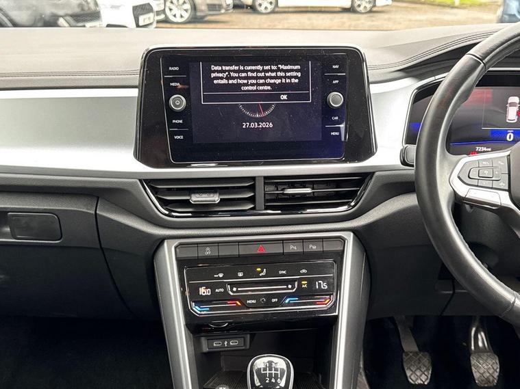 This 2023 Volkswagen T-Roc TSI Life presents an exceptional opportunity with an incredibly low mileage of just 7219 miles, making it practically new for its age. This one owner vehicle boasts a 1.0 litre Euro 6 compliant petrol engine, offering a fuel economy of 48 miles per gallon. The Life trim level comes equipped with a suite of useful features, including automatic headlight control with LED separate daytime running lights and a coming home leaving home function, ensuring you always have optimal visibility. Inside, you'll find the Air Care Climatronic air conditioning system with an active combination filter and two zone temperature control for personalised comfort, alongside a Bluetooth mobile phone interface for seamless connectivity.The T-Roc TSI Life also benefits from LED headlights for enhanced illumination and a driver assistance package that includes adaptive cruise control, making journeys more relaxed and safer. These highlights demonstrate how this particular T-Roc stands out from others, offering a superior driving experience with its advanced technology and efficiency. Furthermore, its low CO2 emissions contribute to a more environmentally conscious drive, aligning with modern motoring expectations..