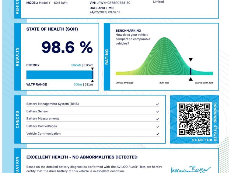 Introducing the Tesla Model Y SUV, a stunning electric vehicle that combines cutting-edge technology with sleek design. Finished in a classic White exterior, this Tesla Model Y is sure to turn heads wherever you go. With 346 ps of power at your fingertips, you'll experience a smooth and exhilarating drive every time you step behind the wheel.Don't miss your chance to own this incredible Tesla Model Y SUV. Contact us today to schedule a test drive and experience the future of driving for yourself.For peace of mind this vehicle has completed a multi point AA dealer's website finance is also available.We are open 7 days a week and have more than 1500 cars to choose from.All our Euro 4 Petrol and Euro 6 Diesel vehicles meet the ULEZ standard.Vehicle specification can be found below. From time to time vehicles have manufacturer recalls notified. Please read our recall policy on our website for further information. Please be advised that the advertised electric vehicle (EV) listings may experience battery degradation over time, resulting in reduced performance and range compared to the original specifications. Factors such as usage patterns, environmental conditions, and charging practices can contribute to this degradation. While we strive to provide accurate information, the actual battery health and performance of each EV may vary. Customers are encouraged to conduct thorough research and consider the potential impact of battery degradation before making a purchase decision. We recommend consulting with a qualified technician or conducting a battery health inspection for further assessment. This vehicle comes with an AVILOO Battery Health Certificate - the global standard for EV battery testing. Full independent analysis confirms excellent battery condition with detailed State of Health assessment, cell-level checks, and accurate range data. Certificate included with purchase for your complete peace of mind and future resale value.Disclaimer: While every effort is made to ensure the accuracy of vehicle specifications, features, and descriptions, errors and omissions may occur. Specifications and equipment may vary and may not be present on the vehicle at the point of sale. Buyers are advised to confirm all details with the seller before completing a purchase..