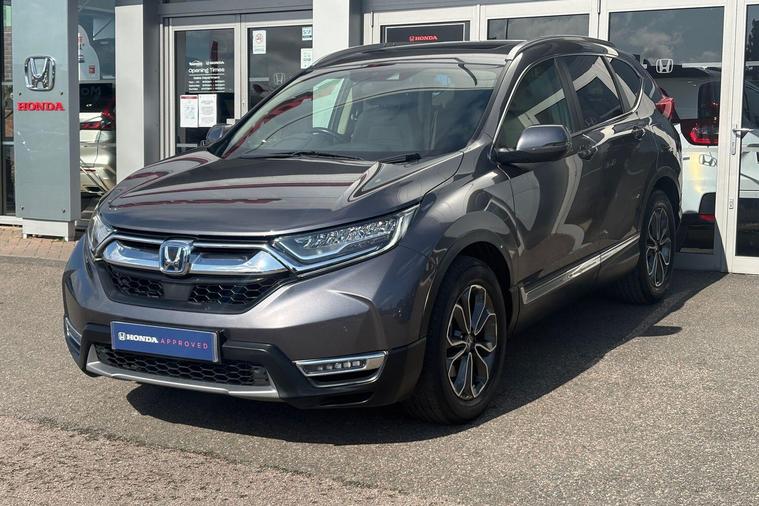 This 2021 Honda CR-V h i-MMD EX offers an exceptional blend of efficiency and capability, boasting a sophisticated 2.0L Petrol Hybrid engine paired with a responsive Four Wheel Drive system. As a Euro 6 compliant vehicle, it meets stringent emission standards. This EX trim level comes equipped with a host of desirable features, including a heated steering wheel for those chilly mornings, an opening panoramic glass roof to brighten the cabin, and smart entry and start for effortless access. The convenience continues with dusk sensing headlights that automatically illuminate, and integrated Bluetooth hands free telephone for seamless connectivity on the go.The spacious boot space in this CR-V ensures you have ample room for all your luggage, shopping, or equipment, making it a practical choice for families and adventurers alike. These carefully selected features, such as the hybrid powertrain and advanced connectivity options, demonstrate how this Honda CR-V EX is designed to offer a superior driving experience compared to other vehicles in its class, providing both comfort and cutting edge technology..