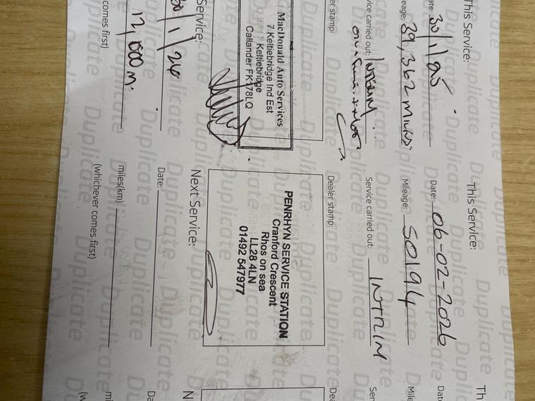 SERVICE HISTORY 12 MONTHS MOT.